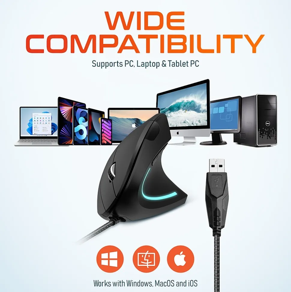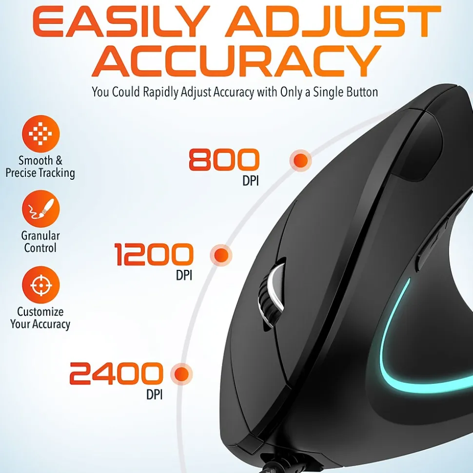 The Delton Ergonomic 12 vertical mouse has been redesigned with power users like you have in mind. Remove wrist and arm strain from your day-to-day work, and avoid long-term health problems associated with prolonged mouse activity. The Delton Ergonomic 12 vertical mouse is specifically designed to keep your wrist and arm at a more natural angle. This prevents forearm pronation (crossing of your arm bones) that happens with traditional mouse usage and reduces strain on your wrist. This simple but revolutionary design change nearly eliminates strain on your wrist and arm and makes prolonged projects, gaming sessions, and other computer experiences enjoyable once again. Delton’s digital precision technology, adjustable accuracy, and a six-button design (including scroll wheel) makes work or play a breeze.