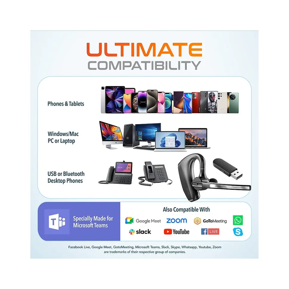 Delton K130 Wireless Noise Canceling Bluetooth Computer Earbud Headset, MS Teams, Black (DBHK130)