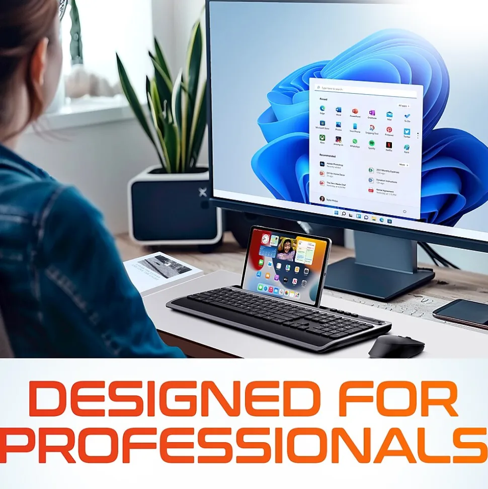 - Designed for versatility, this keyboard mouse combo is compatible with PCs, laptops, and tablets, while supporting a wide range of operating systems, including Windows, iOS, MacOS, and Linux.