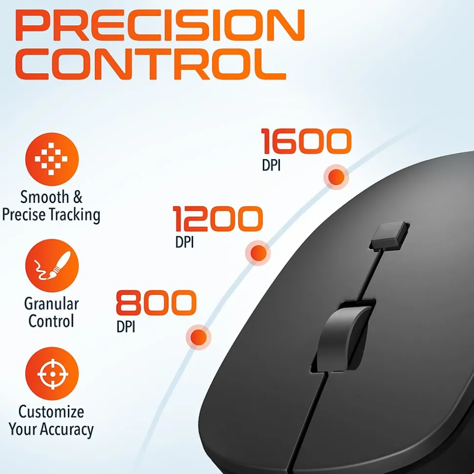 - Three DPI levels (800, 1200, 1600) of the ergonomic mouse allow you to adjust the sensitivity for optimal control in every task.