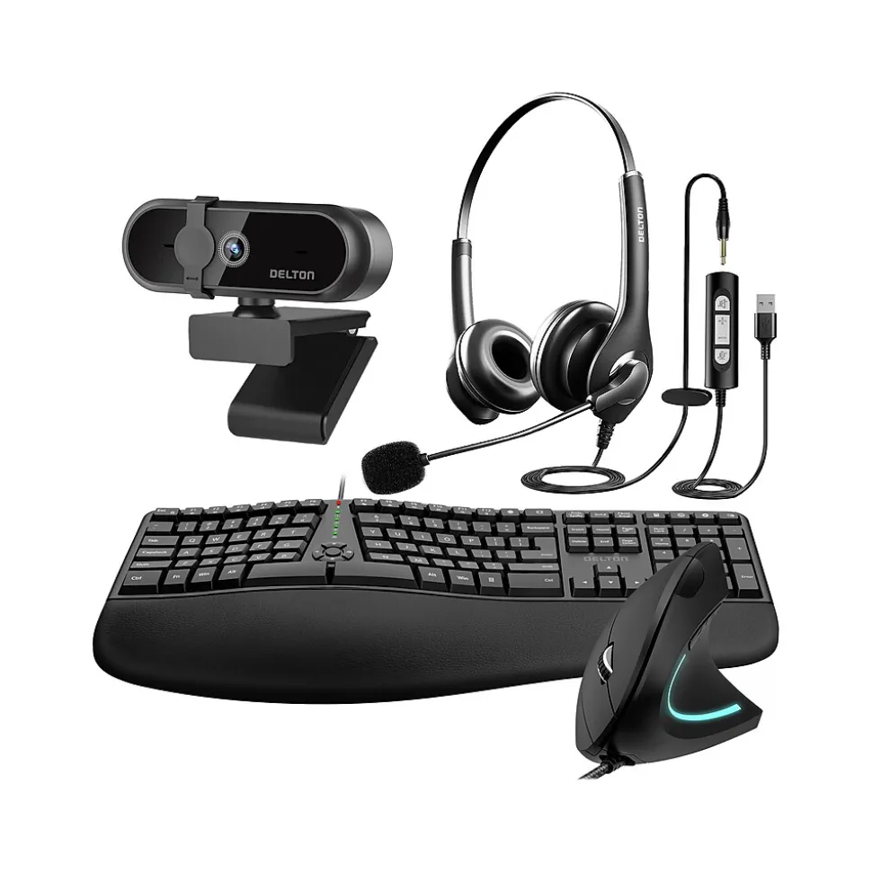 The Delton Work Anywhere 10Y kit is designed to get you up and running and ready for business. This kit includes a reliable 10Y noise-canceling headset, a full-size ergonomic keyboard, a noiseless ergonomic mouse, and a 1080p 30 fps USB webcam. The kit is designed to get you working quickly: no software installations needed, just plug and use. Each tool is adjustable for maximum comfort and has intuitive controls – all the features you need to get the job done.