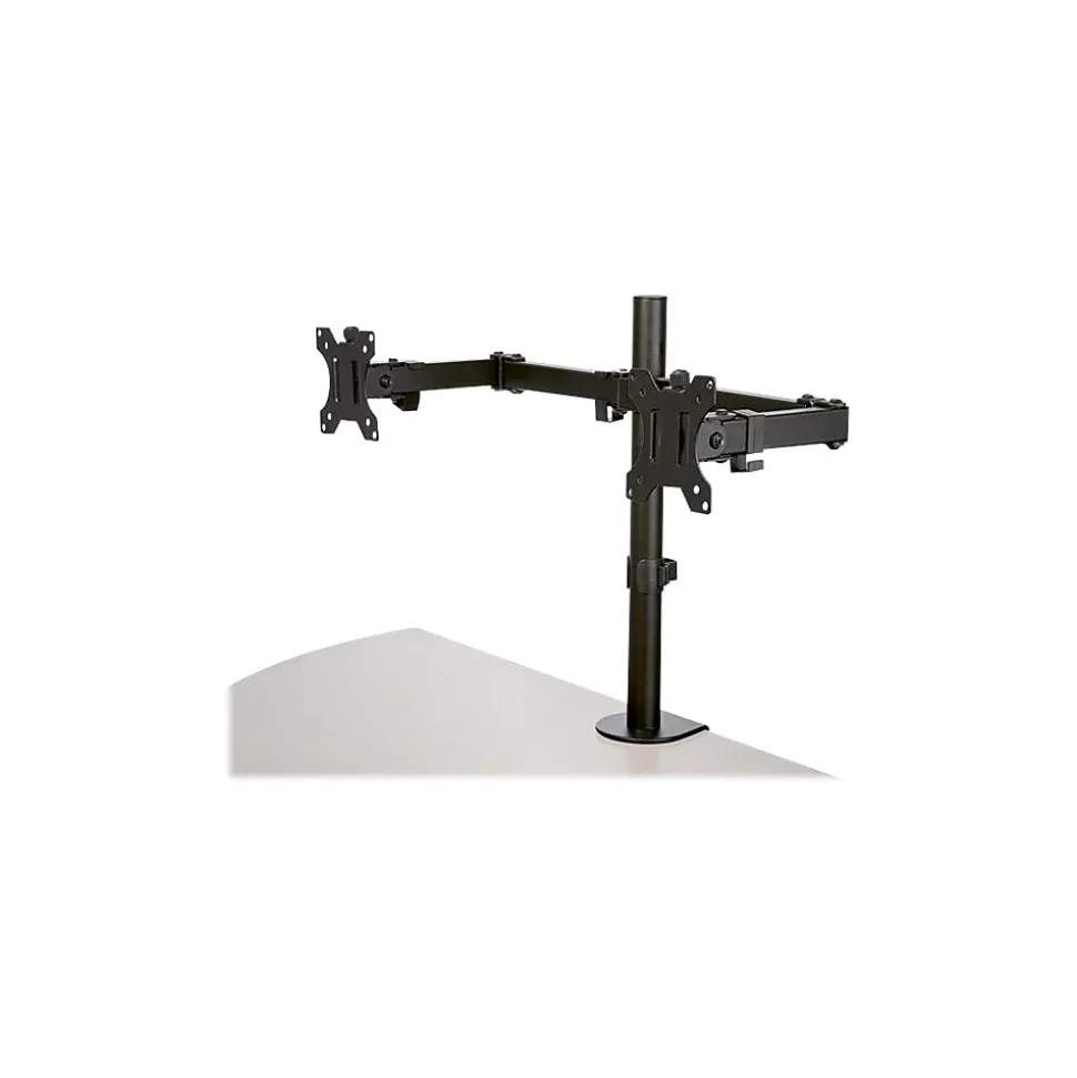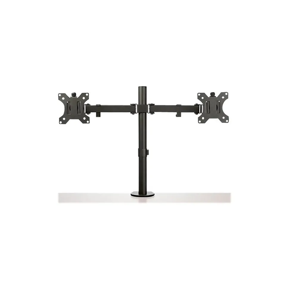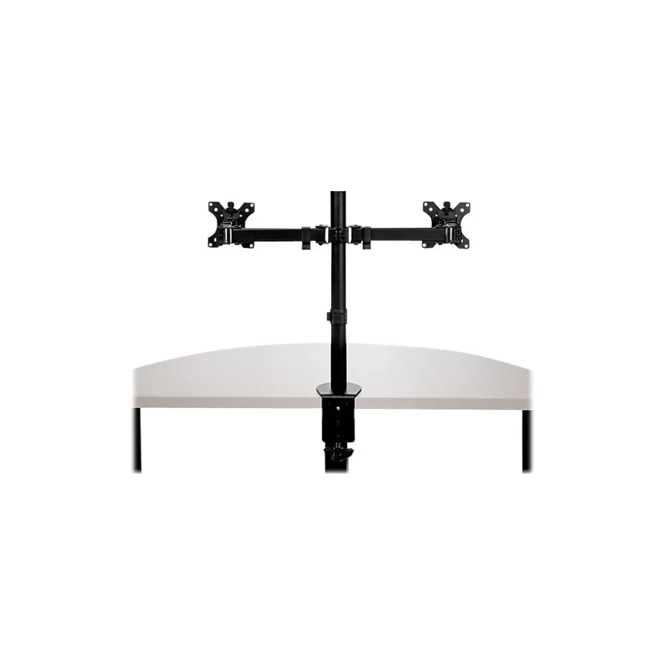 - WIDE RANGE OF MOTION: Double monitor mount increases ergonomic comfort and productivity with +45/-45° tilt, +90/-90° swivel, 360° rotating display, and adjustable height along the 15.7″ (39.8 cm) pole