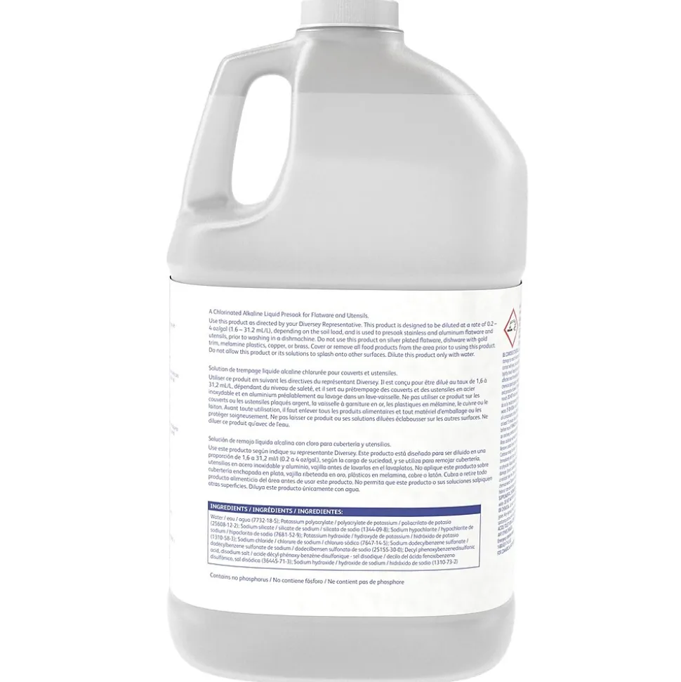 Take on tough commercial food service cleaning with this concentrated presoak liquid, which is ideal for large dishwashing loads. Formulated to remove the tannin stains caused by coffee and tea, this liquid is alkaline-chlorinated so it’s safe on stainless steel and aluminum while doing a thorough job. Diversey Suma Dip K1 liquid is effective on china, breaking down caked-on food.