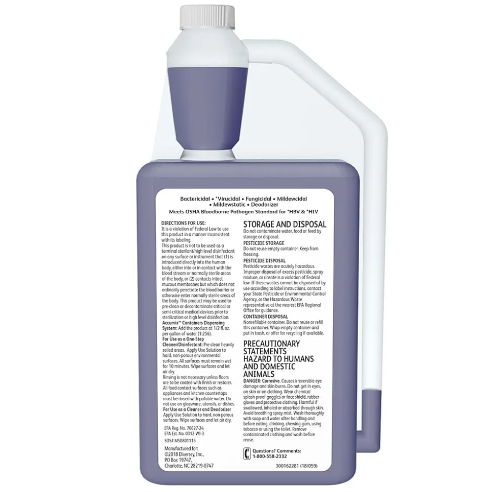 - Highly concentrated quaternary formula provides excellent one-step, cost effective cleaning and disinfection