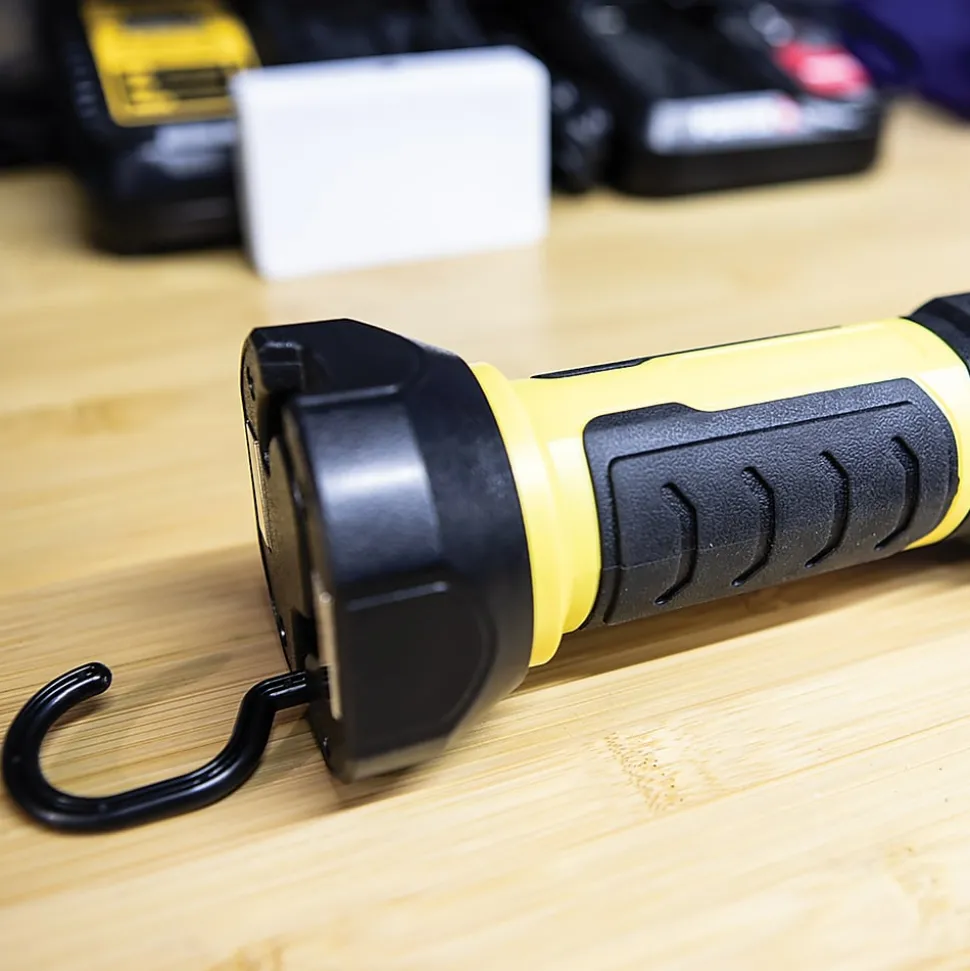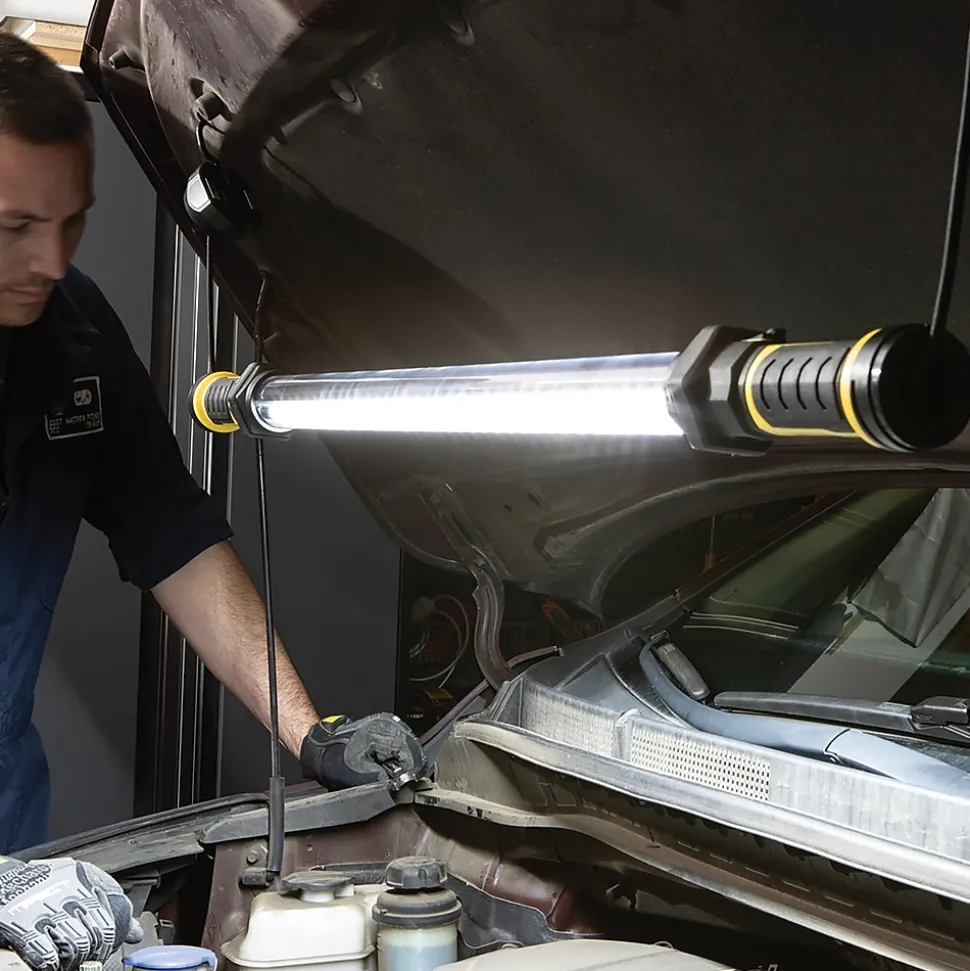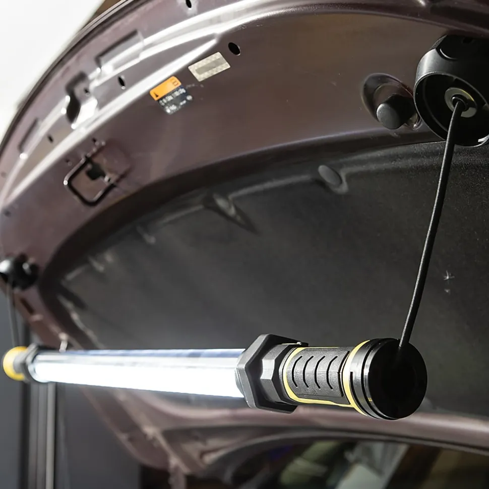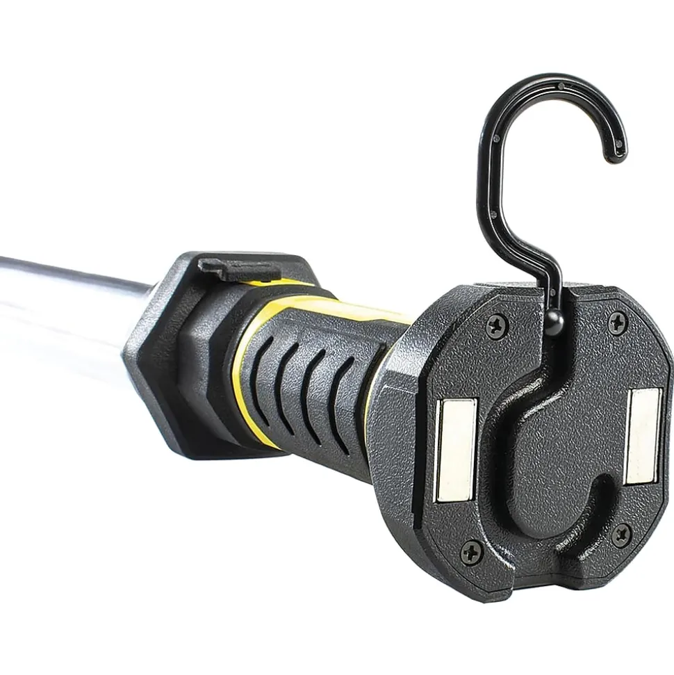 - Can be hung from collapsible, rotatable hook ends or placed on its magnetic/hook base for multiple applications; multiple positions for hands-free use; ideal for workshop or automotive use