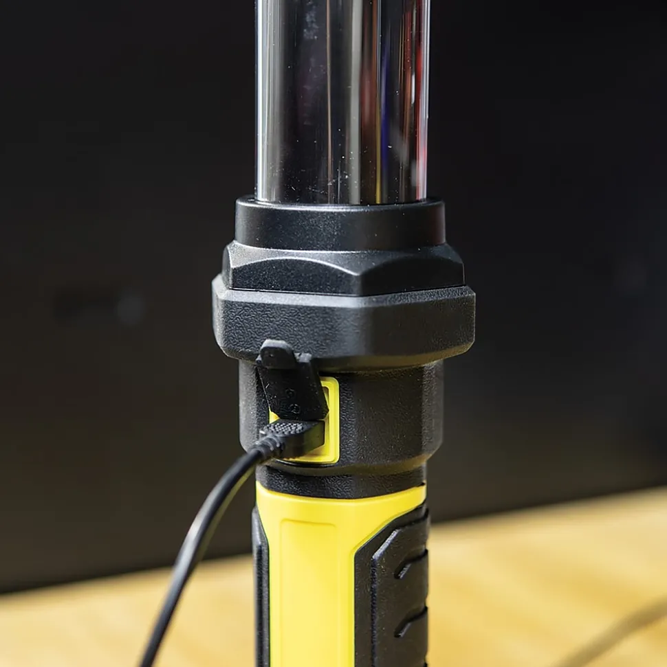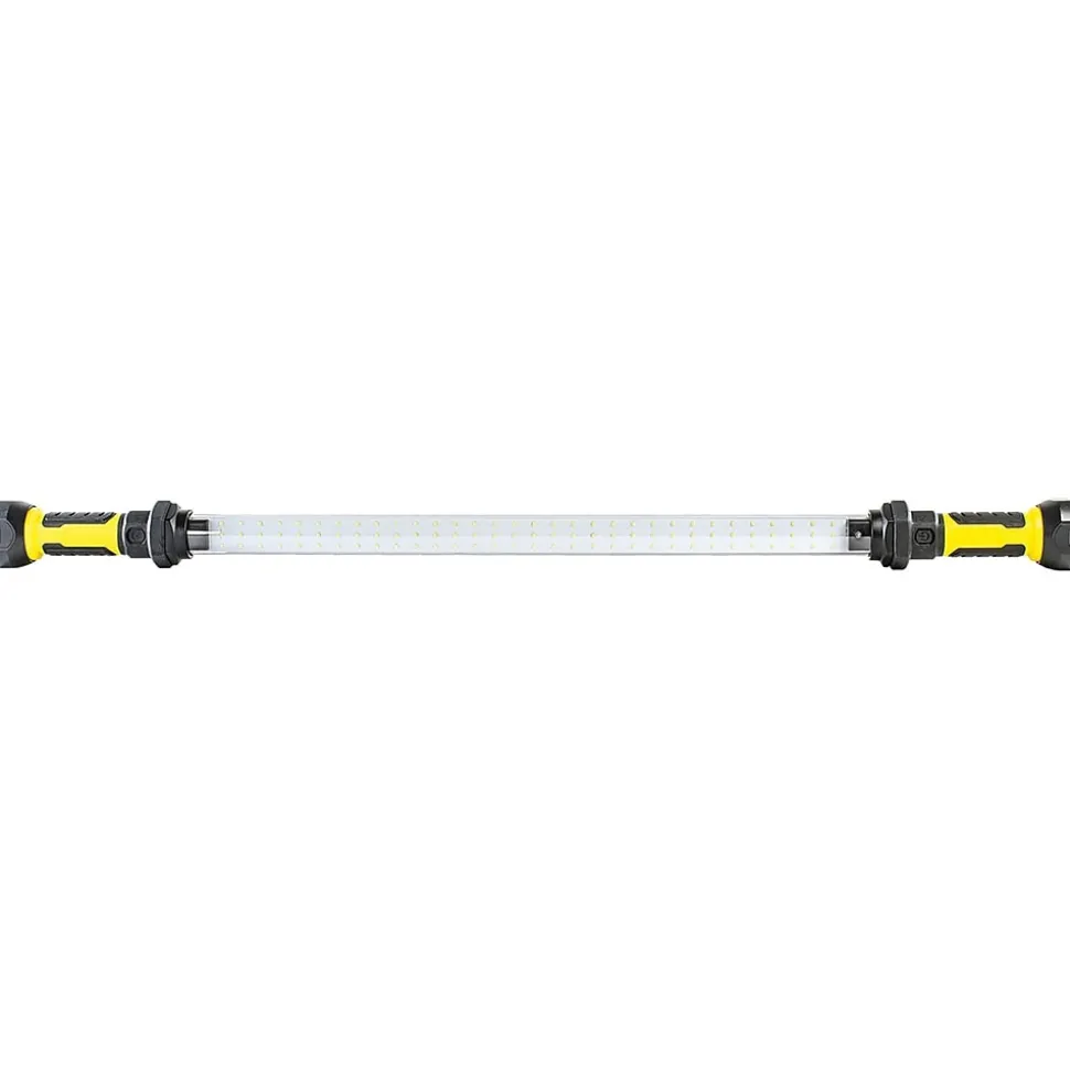 The Dorcy 42 In. 1,200 Lumen Rechargeable Light Bar is ideal for a wide range of hands free portable lighting needs. It has multiple hands-free positions thanks to its magnetic base and rotatable hang hooks. With power modes of 1,200 lumens on high and 600 lumens on low, this light comes with a power level indicator and is powered by a 4,400 mAh 3.7-volt 20 watt battery and COB LEDs. Weighing in at only 1 lb., this water-resistant light bar has a charging time of 4 to 5 hours and a running time of 4-1/2 hours on high, 10-3/4 hours on low.