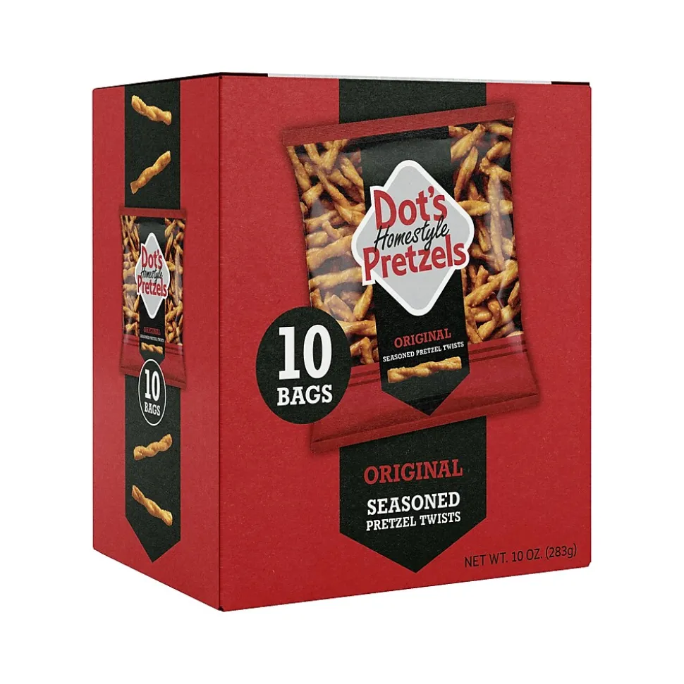 These Dots Homestyle Original twist pretzels are baked to perfection with top-secret seasoning blend. Each pretzel is seasoned with a blend of bold and savory spices in every groove and twist. These pretzels have a big-time buttery flavor with a satisfying crunch.