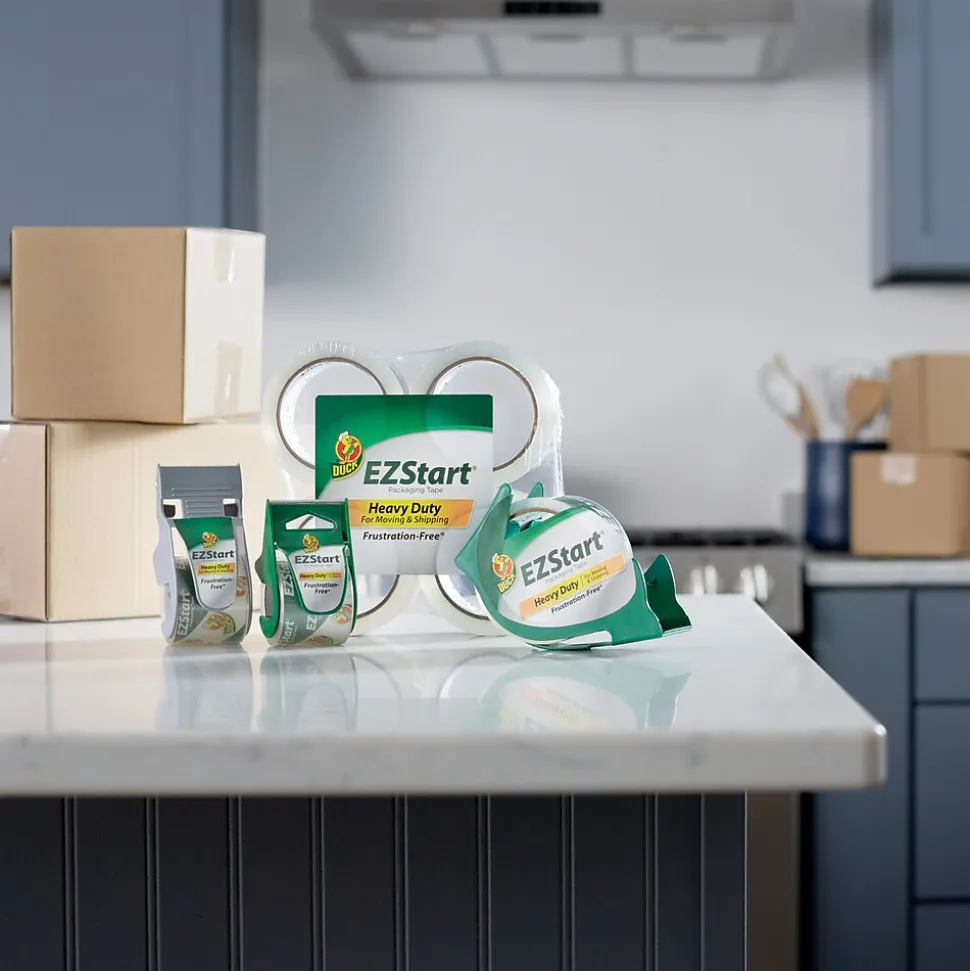 Skip the annoyance of moving and shipping tapes that split or tear. Duck® Brand EZ Start® Packing Tape is designed to be Frustration-Free® so it always unrolls smoothly, easily and quietly. Featuring a long-lasting adhesive, you can keep your boxes and packages secure during shipping, moving and storage. Plus, the tape starts easily off the roll, eliminating the frustration of losing the tape end so you can pack up and leave the stress behind. This crystal clear packing tape unwinds quietly, so it’s perfect to use in the office or at home.