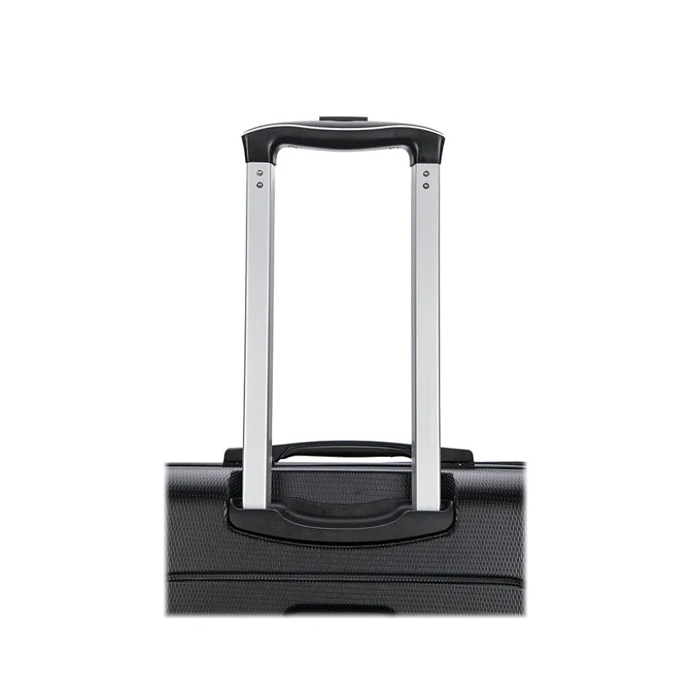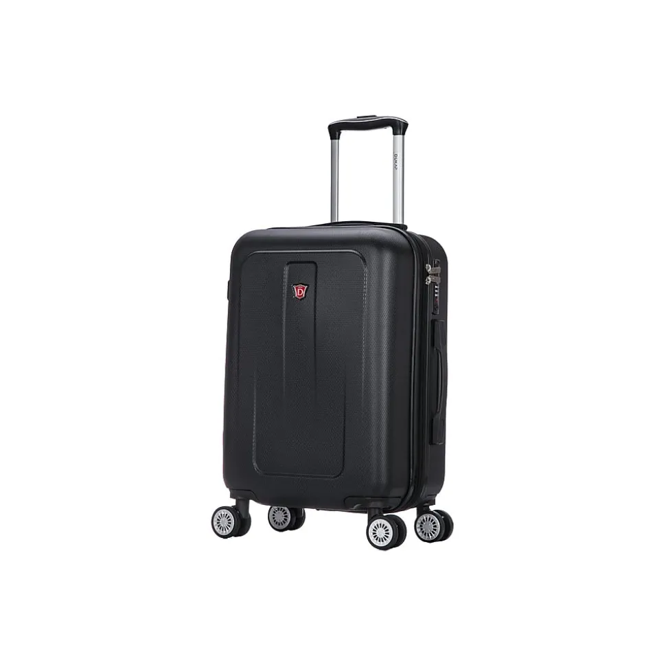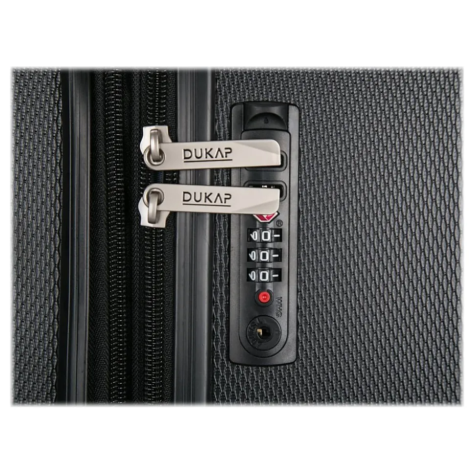 Lightweight PC/ABS engineered material with a micro diamond finish. The hard-flex construction offers maximum strength, durability, and a water-/scratch-resistant finish. The DUKAP CRYPTO suitcase expands 2” for additional extra space. Four dual spinner 360-degree silent wheels allow for effortless mobility. It features the built-in three-digit TSA-approved combination lock ad full interior fabric lining with a zipper compartment on one side and snap-on straps on the opposite side for easy packing, plus one inside pocket. It comes with top and side ergonomic gel handles for comfortable and easy lifting, four side studs that allow the luggage to stand upright, and push-button locking internal retractable trolley system. Smooth-gliding oversized zippers ensure your convenience.