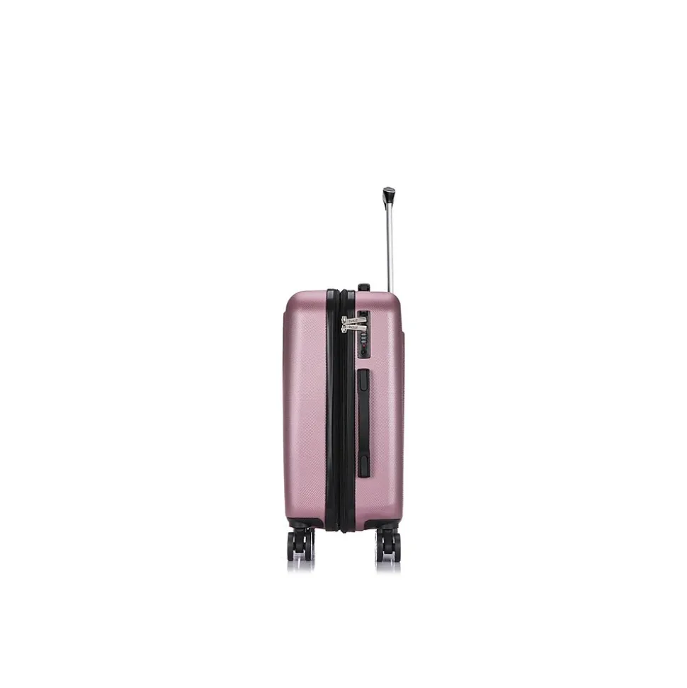 Lightweight PC/ABS engineered material with a micro diamond finish. The hard-flex construction offers maximum strength, durability, and a water-/scratch-resistant finish. The DUKAP CRYPTO suitcase expands 2” for additional extra space. Four dual spinner 360-degree silent wheels allow for effortless mobility. It features the built-in three-digit TSA-approved combination lock ad full interior fabric lining with a zipper compartment on one side and snap-on straps on the opposite side for easy packing, plus one inside pocket. It comes with top and side ergonomic gel handles for comfortable and easy lifting, four side studs that allow the luggage to stand upright, and push-button locking internal retractable trolley system. Smooth-gliding oversized zippers ensure your convenience.