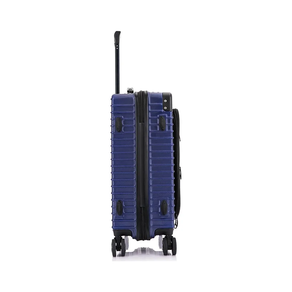 The DUKAP Tour hardside spinner carry-on luggage is a durable and practical travel choice. This luggage offers convenience and security with a front pocket for your laptop and interior pockets for essentials, four spinner wheels, a TSA-approved lock, and an integrated USB port. The interior is fully lined with various compartments, and the luggage has protective corner bumpers and ergonomic handles for easy lifting.