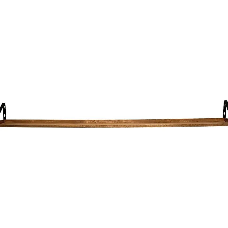 This Eden Grove Shelving real-wood ledge with metal brackets has a smooth surface with rounded edges and an even tapered style. The sturdy metal brackets enhance the ledge and are simple to install. The finish of the real wood varies in color due to the nature of the natural material. The look of reclaimed wood is part of the trendy accent this ledge will make to your home or office.