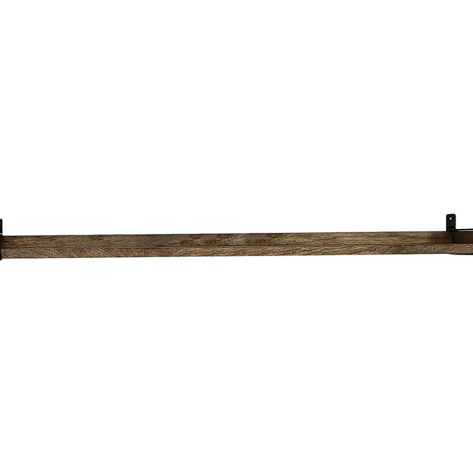 Driftwood real wood ledge with metal brackets has a smooth surface with rounded edges and an even tapered style. The sturdy metal brackets enhance the ledge and are simple to install. The look of reclaimed wood is all part of the trendy accent this Eden Grove ledge will make to your home or office. Great for the popular farmhouse and urban loft decorating trends.