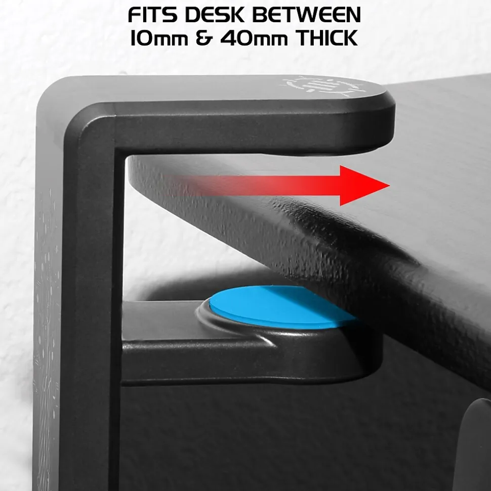 - FITS MOST TABLES, DESKS, AND COUNTERS: Clamps securely onto desks up to 40mm thick and as narrow as 10mm for a near universal fit on most desks || the spring clamp is easy to remove and reattach!