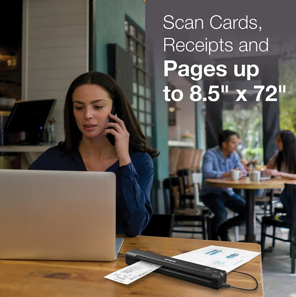 - Versatile paper handling ― scans documents up to 8.5″ x 72″, as well as ID cards and receipts