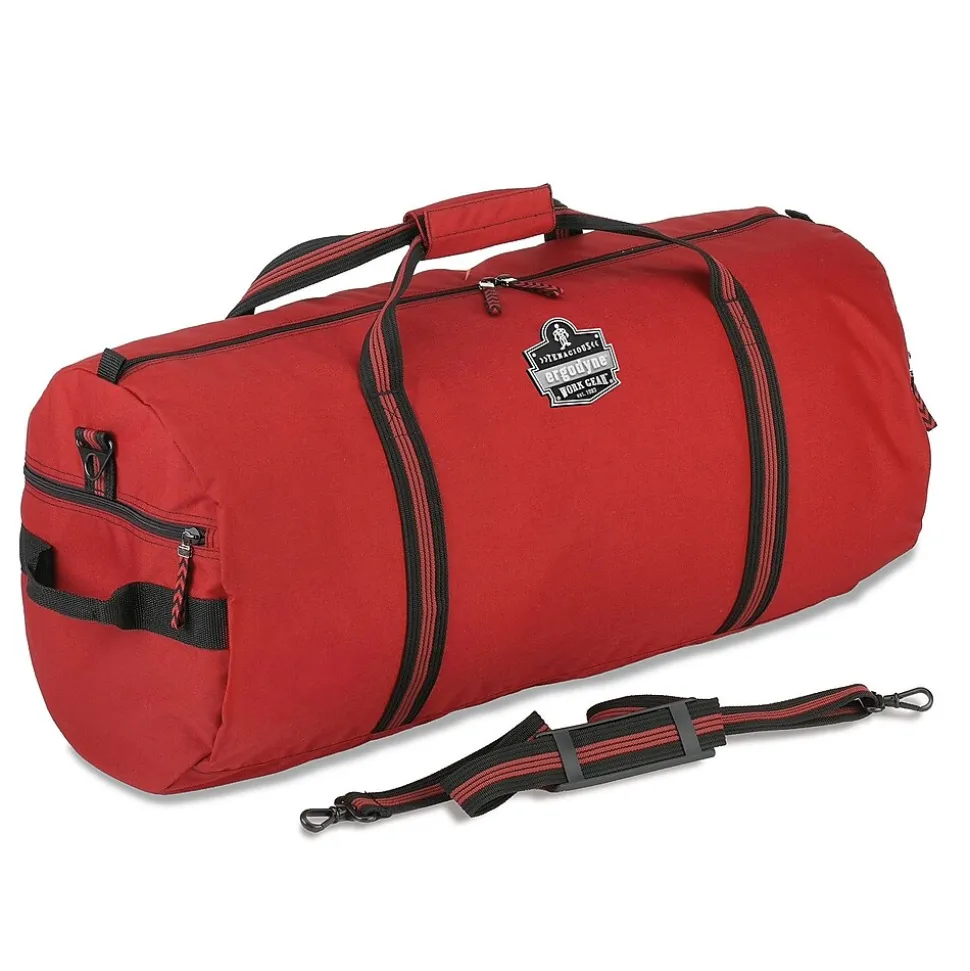 Ergodyne Arsenal 5020 Red small duffel bag contains removable and adjustable shoulder strap/strap grabber for extra comfort. Duffel bag has 8 heavy-duty zippers and two end zipper pocket for convenient.