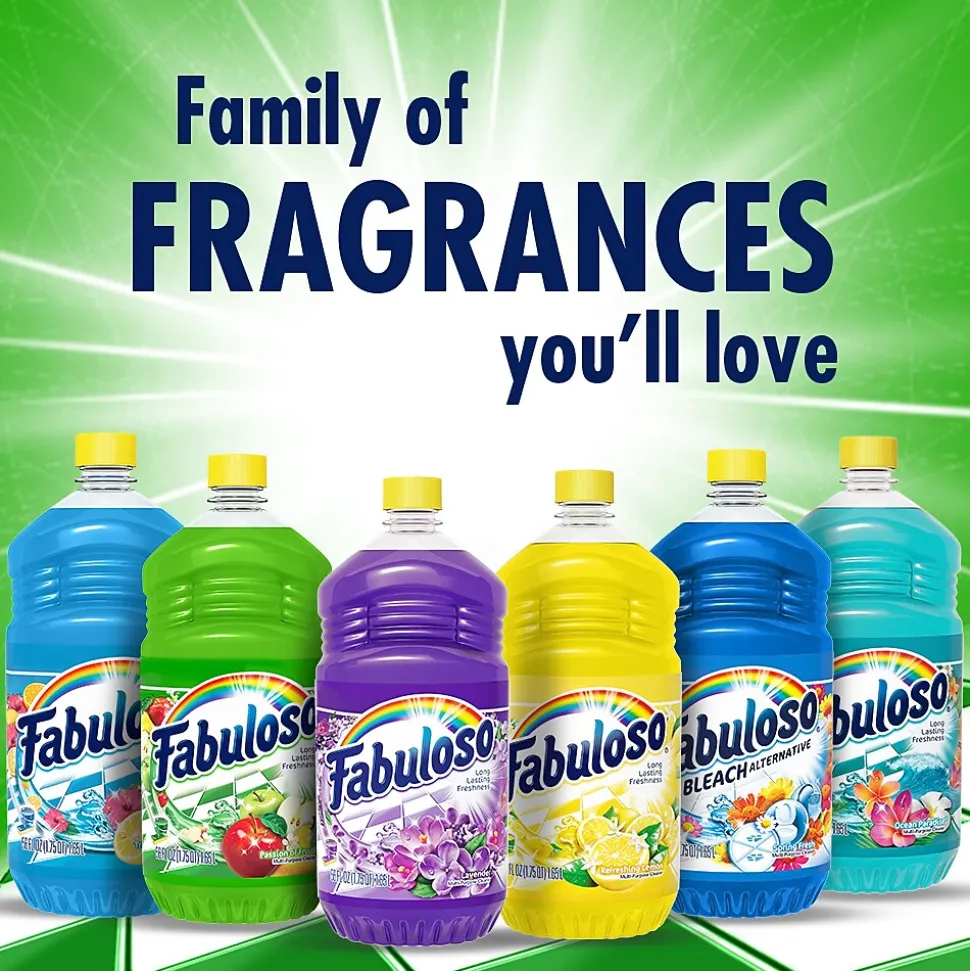 Fabuloso Multi-Purpose Cleaner leaves a fresh scent that lasts. The Passion of Fruits fragrance leaves an irresistible scent your family and guests will notice. It comes in a convenient, easy-pour bottle. This Fabuloso cleaner is easy to use, so there is no need to rinse, and it leaves no visible residue. Discover the long-lasting freshness of Fabuloso Multi-Purpose Cleaner that leaves your home shiny, clean, fresh, and fragrant.
