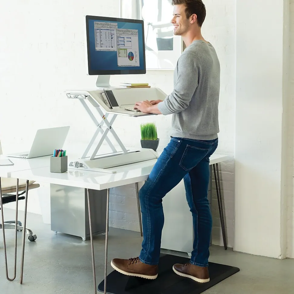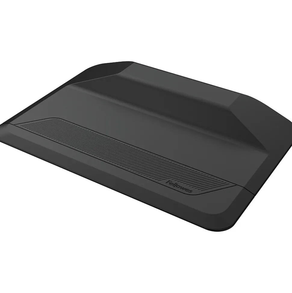 Stay active and comfortable with this durable Fellowes ActiveFusion Floor Mat. This durable anti-fatigue mat features the modern design that complements your home or workspace and suits a wide range of decor styles. The unique shape promotes stretching and movement throughout the day. This black mat encourages subtle movement to prevent fatigue. Use this 36 in. x 24 in. mat with any sit-stand for extra support while standing. The beveled edges help to avoid trip hazards.