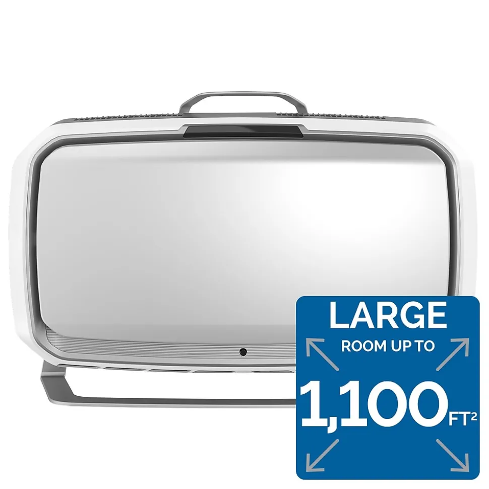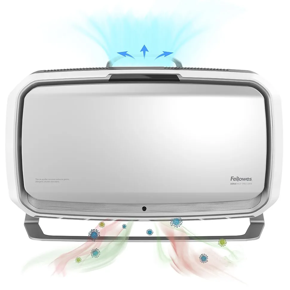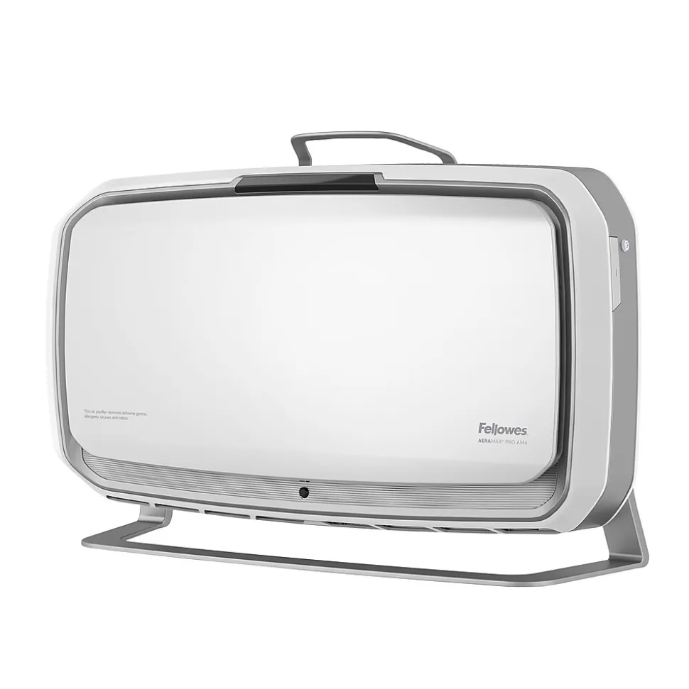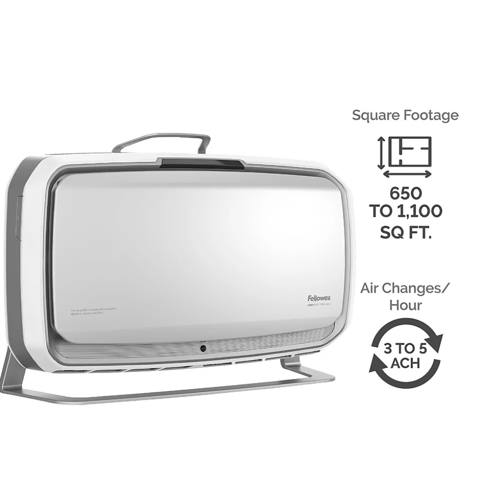 The Fellowes® AeraMax® Pro AM4S with 4-stage H13 True HEPA Filtration effectively removes at least 99.95% of particles as small as 0.1 microns, including allergens, such as pollen, dust, pet dander, and smoke in rooms 650-1100 square feet.Antimicrobial HEPA treatment applied to the True HEPA filter inhibits the growth of odor and stain-causing microorganisms to extend the filter lifespan.Powered by EnviroSmart™ Technology that monitors occupancy and air quality then works harder when you need it.The floor stand offers true flexibility where you need it most; simply plug it in and go.Built to Last- designed and engineered for long term use backed with 5-year warranty
