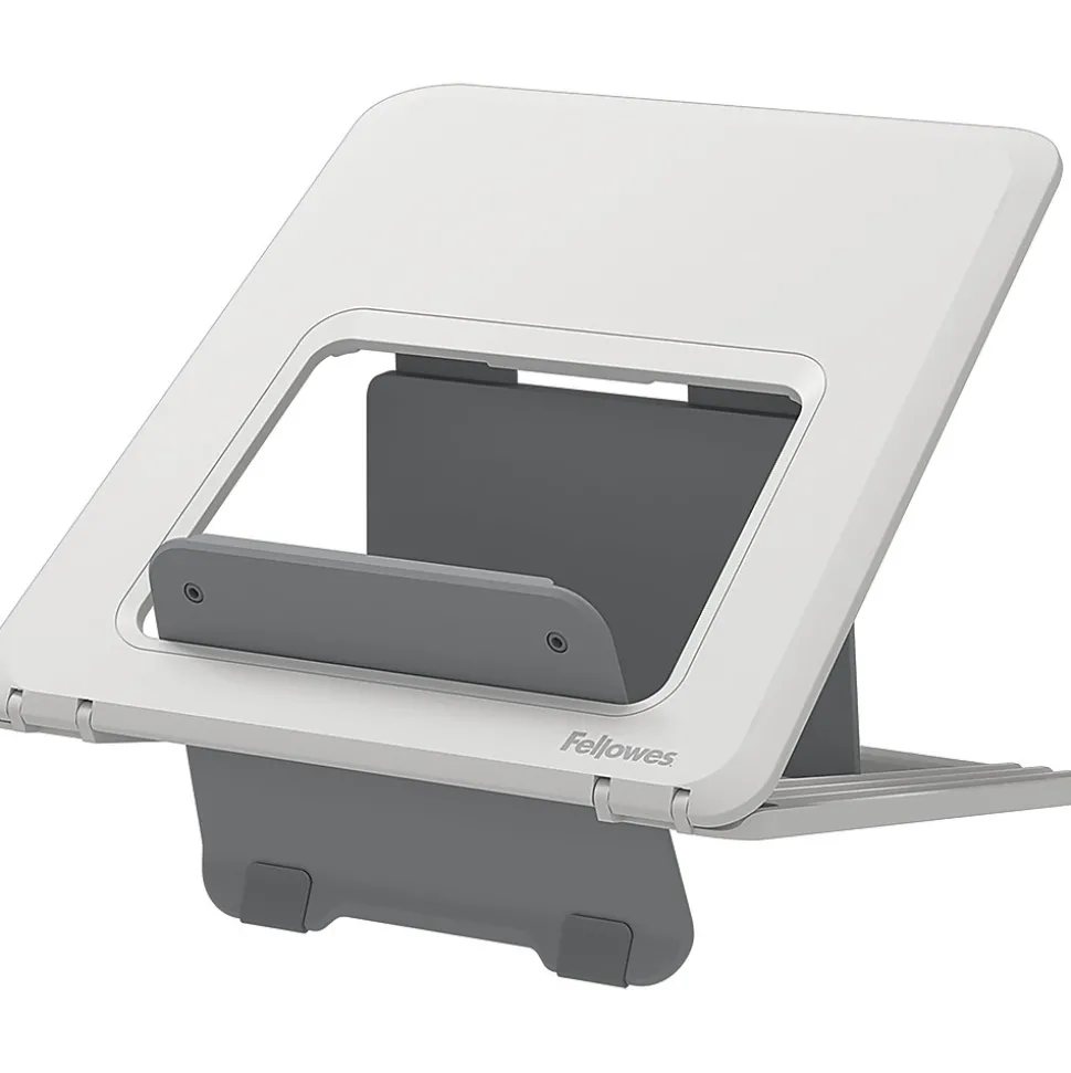 This Fellowes Breyta White laptop riser 100098501 has 12 height adjustments with unique front lift to provide additional height for ergonomic viewing comfort. Compact, lightweight, and portable design that is easy to set up and adjust – ideal for hybrid working. Holds up to 14” laptops weighing up to 8.8lbs. Modern and simple design. Made from materials which are 100% recyclable through Fellowes take-back program. Please contact Fellowes Customer Service for more information. Made to last with extended 5-year limited warranty.