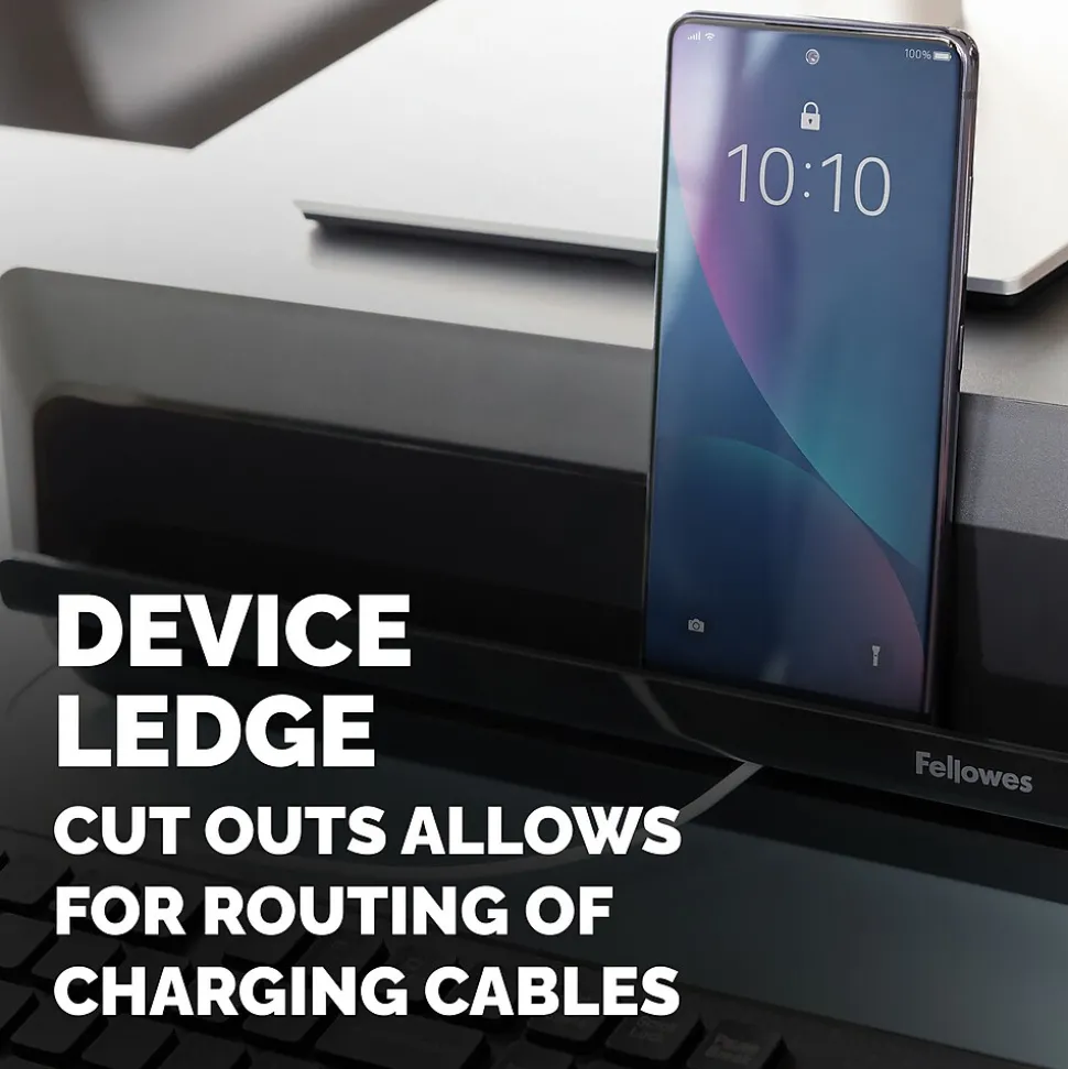 - STAY CONNECTED – Keep your devices powered up with the built-in device channel, providing convenient access for charging while you work