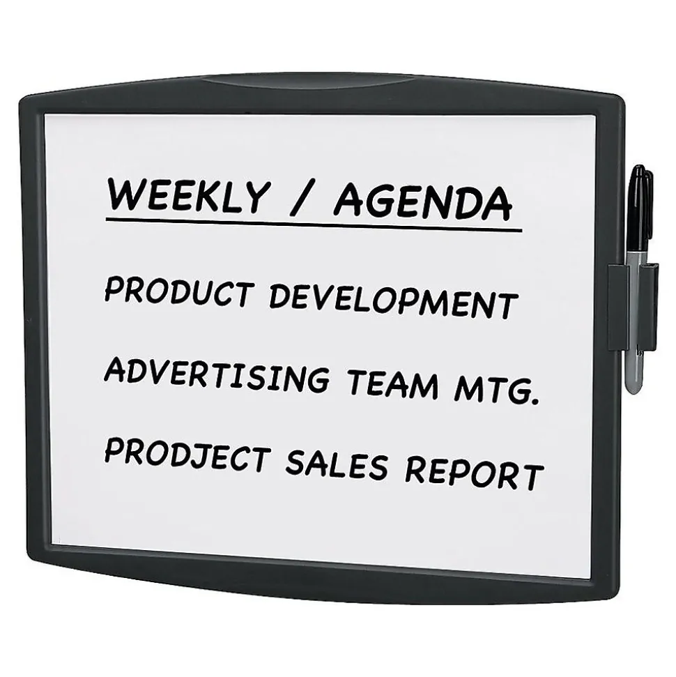 - Package includes: whiteboard, marker with user-friendly eraser tip