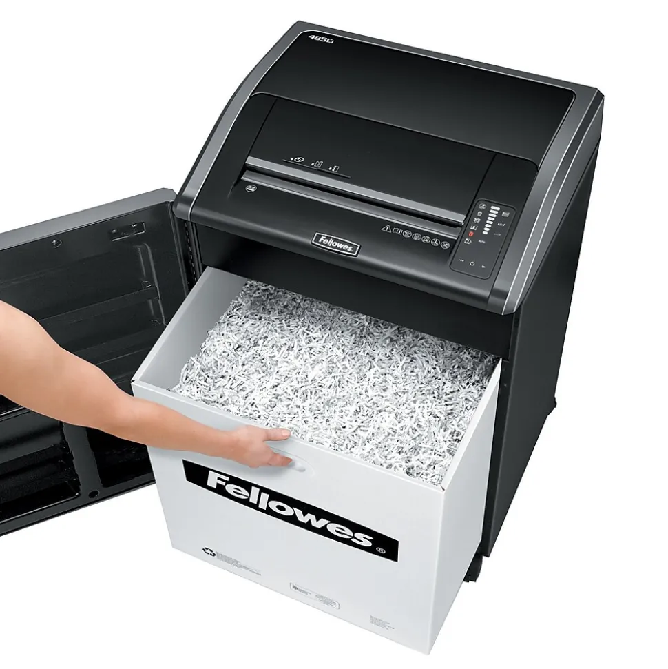 Render documents unreadable during disposal with this cross-cut shredder. SafeSense Technology automatically detects the presence of hands to prevent injury, and the Jam Proof System keeps this shredder working smoothly. The 30-sheet capacity lets you run more paper through in a single pass, reducing the time it takes to purge old files. This shredder boasts a 35-gallon waste bin to keep paper shreds contained until you’re ready to remove them. With powerful cross-cut blades, this Fellowes Powershred shredder slices through CDs, DVDs and credit cards for added versatility.