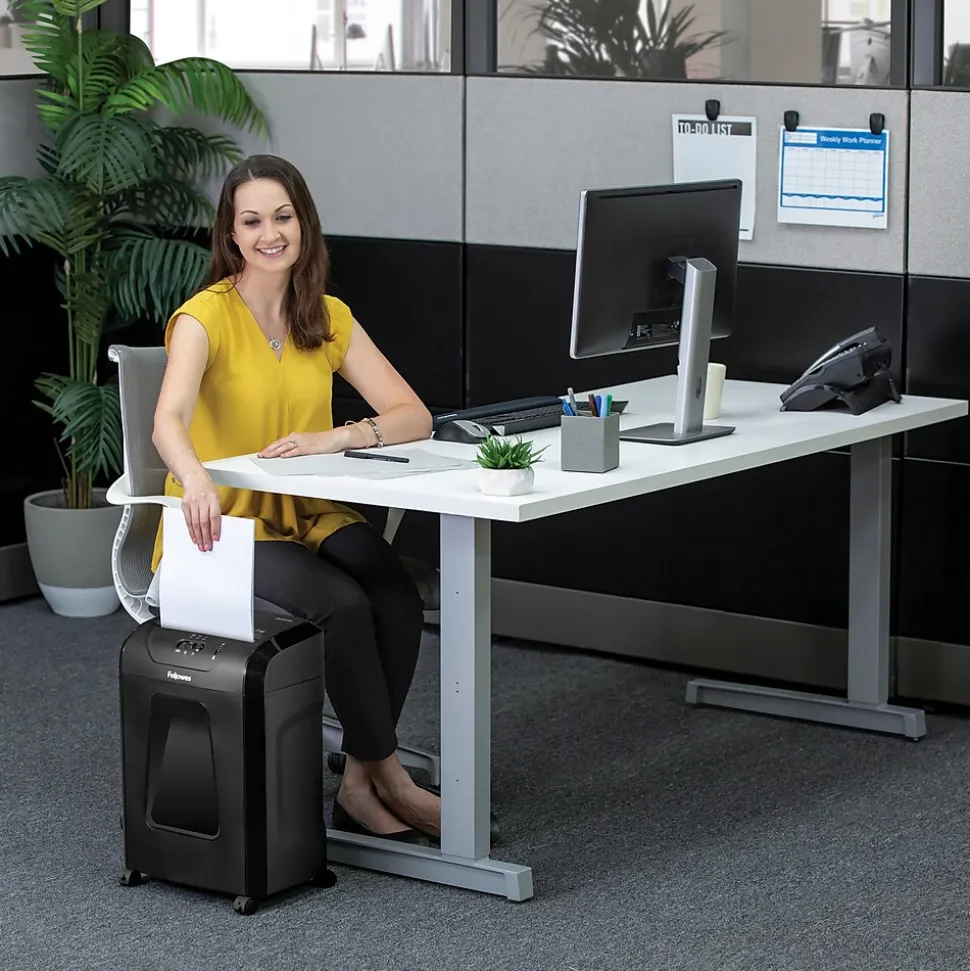 - Shreds 10 sheets per pass into 5/32 in. x ½ in. micro-cut particles (Security Level P-4) for superior security
