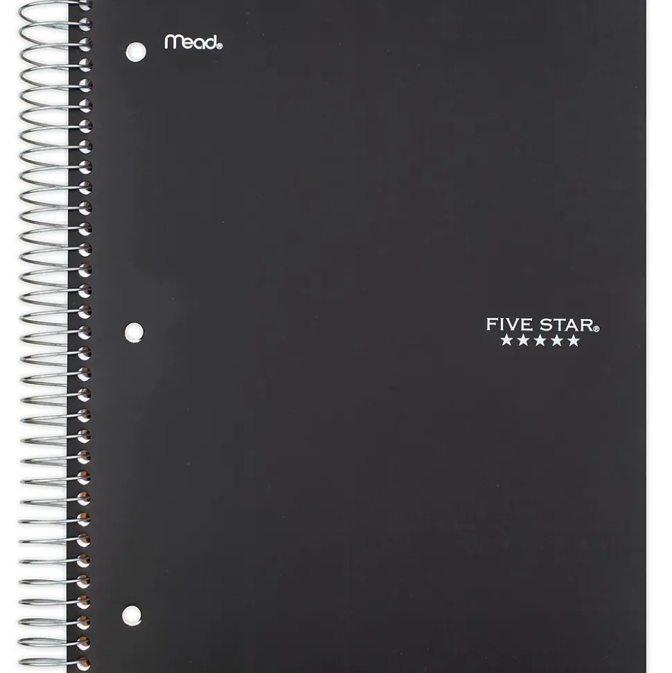 LASTS ALL YEAR. GUARANTEED!* Five Star 5 subject notebook has 200 double-sided, wide ruled sheets that fight ink bleed and are perforated for easy tear out. Sheets measure 8″ x 10 1/2″ when torn out. Tough pockets help prevent tears and hold 8″ x 10 1/2″ loose sheets. Covers are water resistant to protect your notes all year. Spiral Lock wire helps prevent snags on clothes and backpacks. Made with SFI certified paper. Notebook is recyclable – just remove the reinforcement tape on the pocket and recycle the rest! Available in Fire Red, Harvest Yellow, Forest Green, Tidewater Blue, Amethyst Purple, and Black. Color chosen for you.