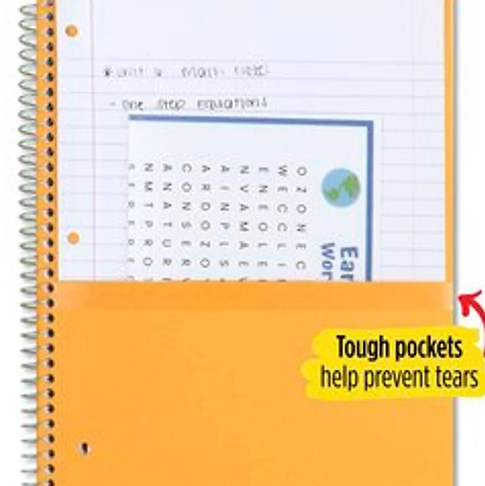 - Tough pockets help prevent tears and hold 8″ x 10 1/2″ loose sheets. Four 2-pocket dividers keep subjects organized.Covers are water resistant to protect your notes all year.