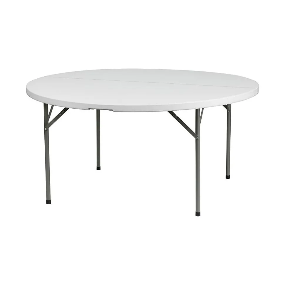 Perfect for indoor and outdoor setups, the 60-inch Flash Furniture Commercial Tables are apt for your portable tabletop needs. Designed with a plastic tabletop with granite white, they are resistant to stains and easy to clean. These plastic commercial tables blend well with the existing decor and their round design fits comfortably in smaller spaces. Available in a set of 15, they feature durable tabletop with blow-molded edges to protect the top from accidental damage.