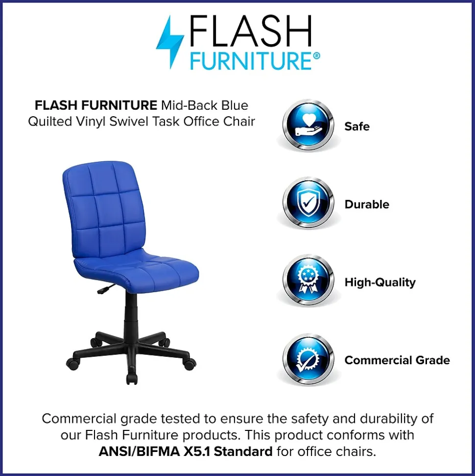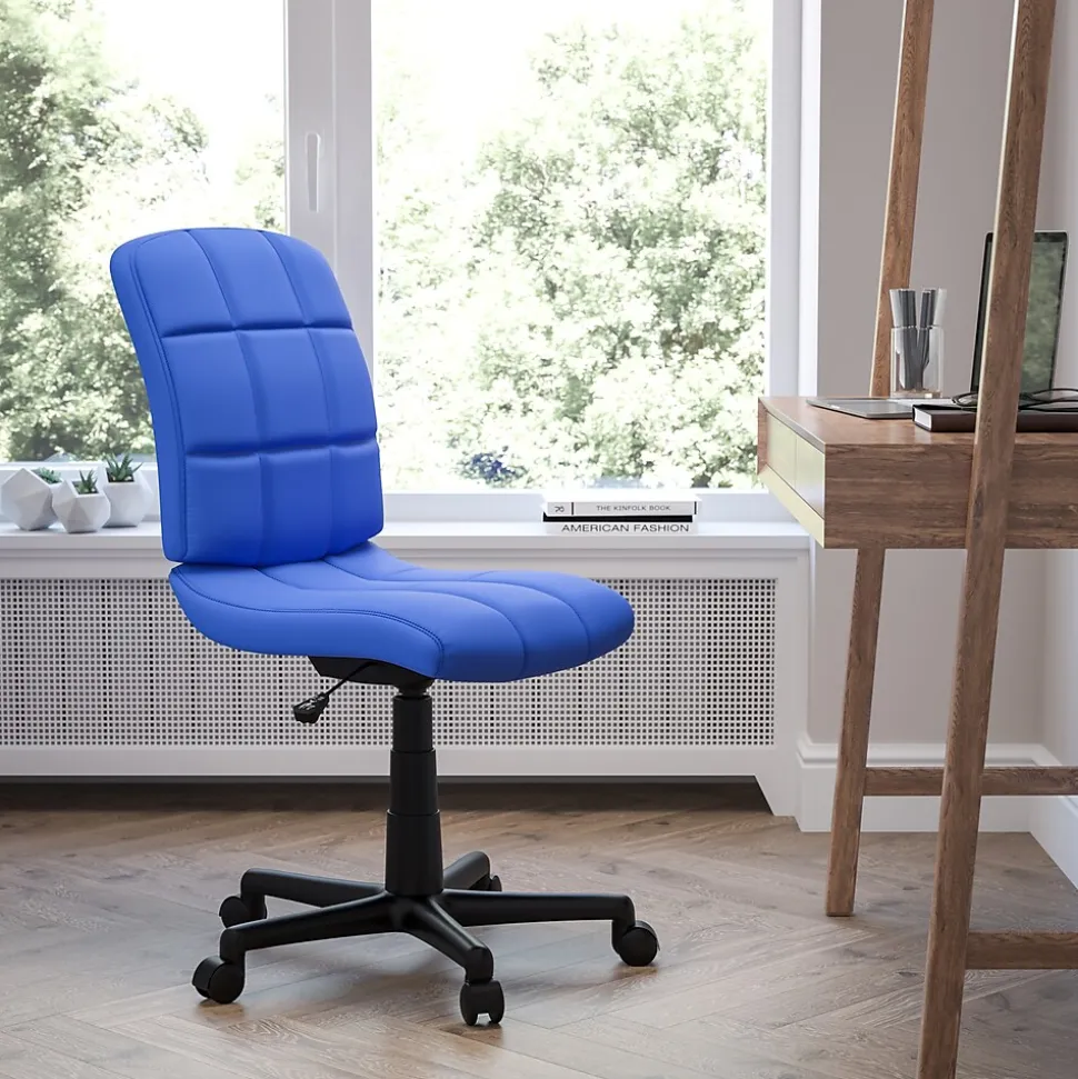 Flash Furniture Clayton Armless Vinyl Swivel Mid-Back Quilted Task Office Chair, Blue (GO16911BLUE)