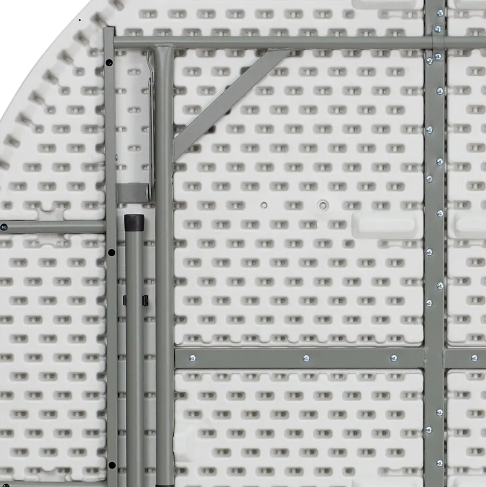 Ensure you have enough surface space for any function and take the stress out of hosting your next gathering. The round folding table is a great option for special event planners, catering companies and banquet facilities. This durable, easy to clean table is commercial rated for use in banquet halls, convention centers and at trade shows. Use during game night, dress it up for holiday parties, and coordinate crafts night. The thick, granite white tabletop is 60″ in diameter, 1.75″ thick, and will comfortably seat up to 8 adults. Its waterproof, impact and stain resistant top have a 880 pound static load capacity. Attractive gray powder coated legs lock securely in place while in use and non-marring floor caps protect your floor by sliding smoothly when you need to move the table. Designed for both indoor and outdoor use, store table indoors and protect the frame from extreme moisture. The 60″ Round Granite White Plastic Folding Table is a convenient option for your next home, school or business event.
