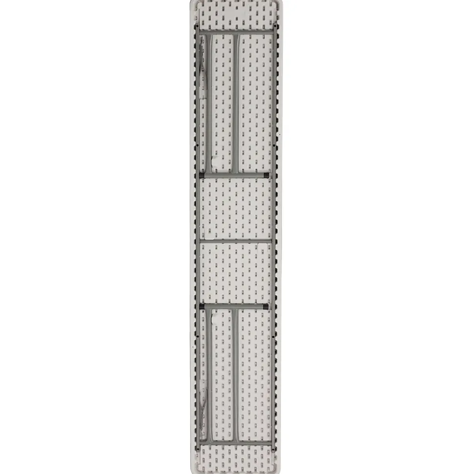 Fill that new designated training room with this narrow rectangular plastic folding table. The space saving design can fit multiple tables in small and large rooms making it the perfect training style table for any classroom or training facility. Have people pick up test packets and informational pamphlets on this perfectly sized folding table. Cleanup is simple on this durable, waterproof top to pick up spills quickly. This 8 foot folding table seats 4 people on one side of the table allowing all at the table a clear view of the board and instructor. When you want to store or transport the legs lock underneath the top. Folding tables can be your go-to table to setup your products at convention centers.