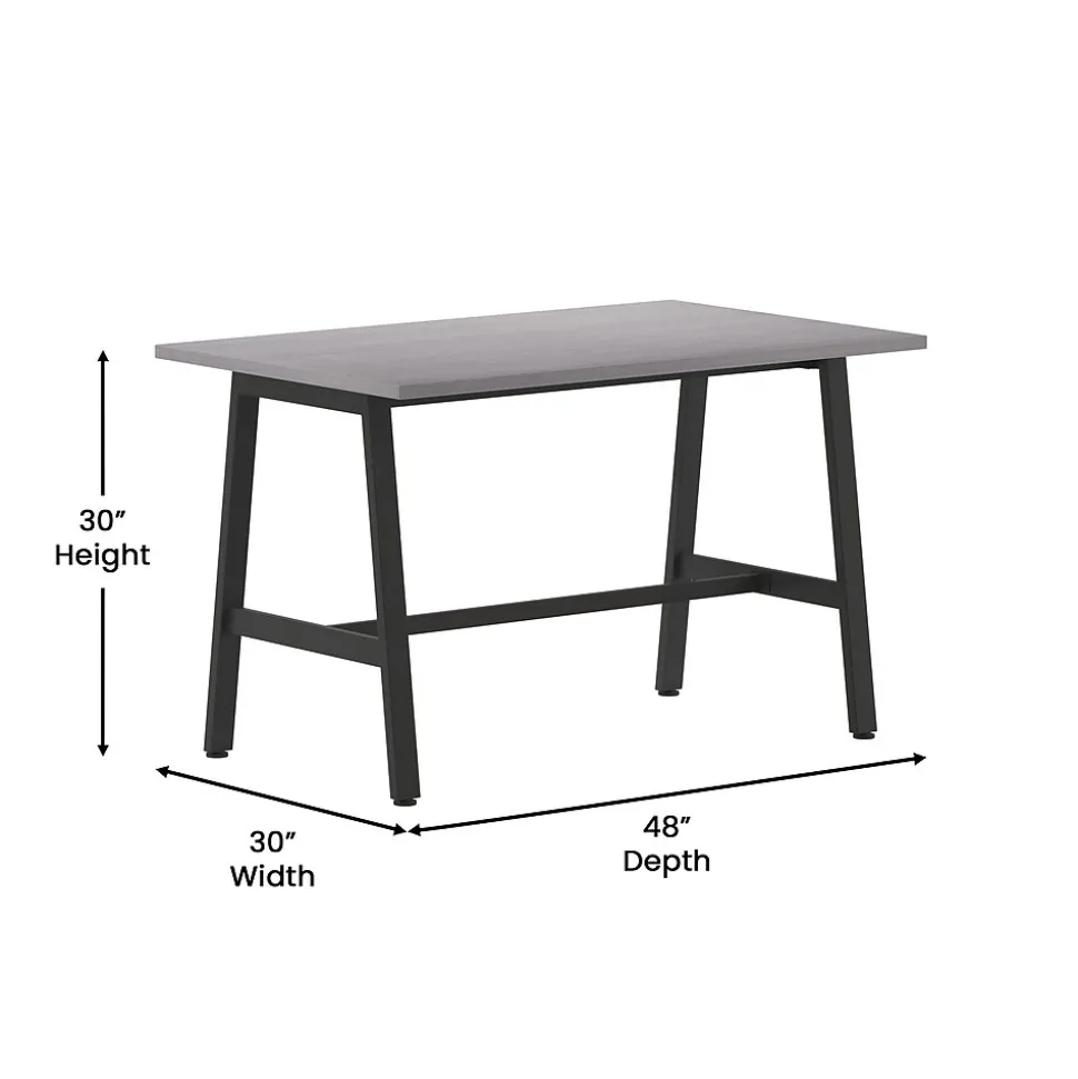 Foster big thinking during brainstorming sessions or encourage open communication and interaction between stakeholders during important meetings with this 48×30 commercial grade conference table. Available in timeless finishes that will blend well in any environment, this boardroom table will make a statement while providing ample space for multiple guests. The liquid and scratch-resistant 1 inch thick table top with a durable laminate finish on both sides and PVC edging increases durability for long-lasting use. The heavy-duty, powder coated, A-frame steel base comes with included hardware and easily attaches to the underside of the table into the predrilled holes. This conference room table holds up to 300 lbs. static weight, and features adjustable floor glides ensuring a level surface. Assembly takes less than 10 minutes and cleanup is easily achieved with a damp cloth.