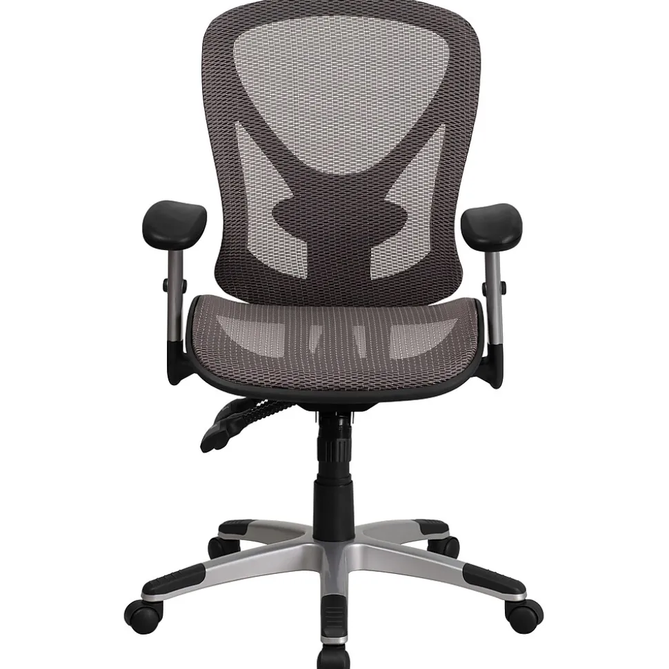 Mesh office chairs can keep you more productive throughout your work day with its comfort and ventilated design. This chair features transparent, breathable mesh material that allows air to circulate. The mid-back design offers support to the mid-to-upper back region. The tilt lock mechanism offers a comfortable rocking/reclining motion. The free rein motion is great for taking a quick break from typing to answer phone calls and relax. The waterfall front seat edge removes pressure from the lower legs and improves circulation. Chair easily swivels 360 degrees to get the maximum use of your workspace without strain. The pneumatic adjustment lever will allow you to easily adjust the seat to your desired height. The silver nylon base with black caps prevents feet from slipping when resting on chairs base.