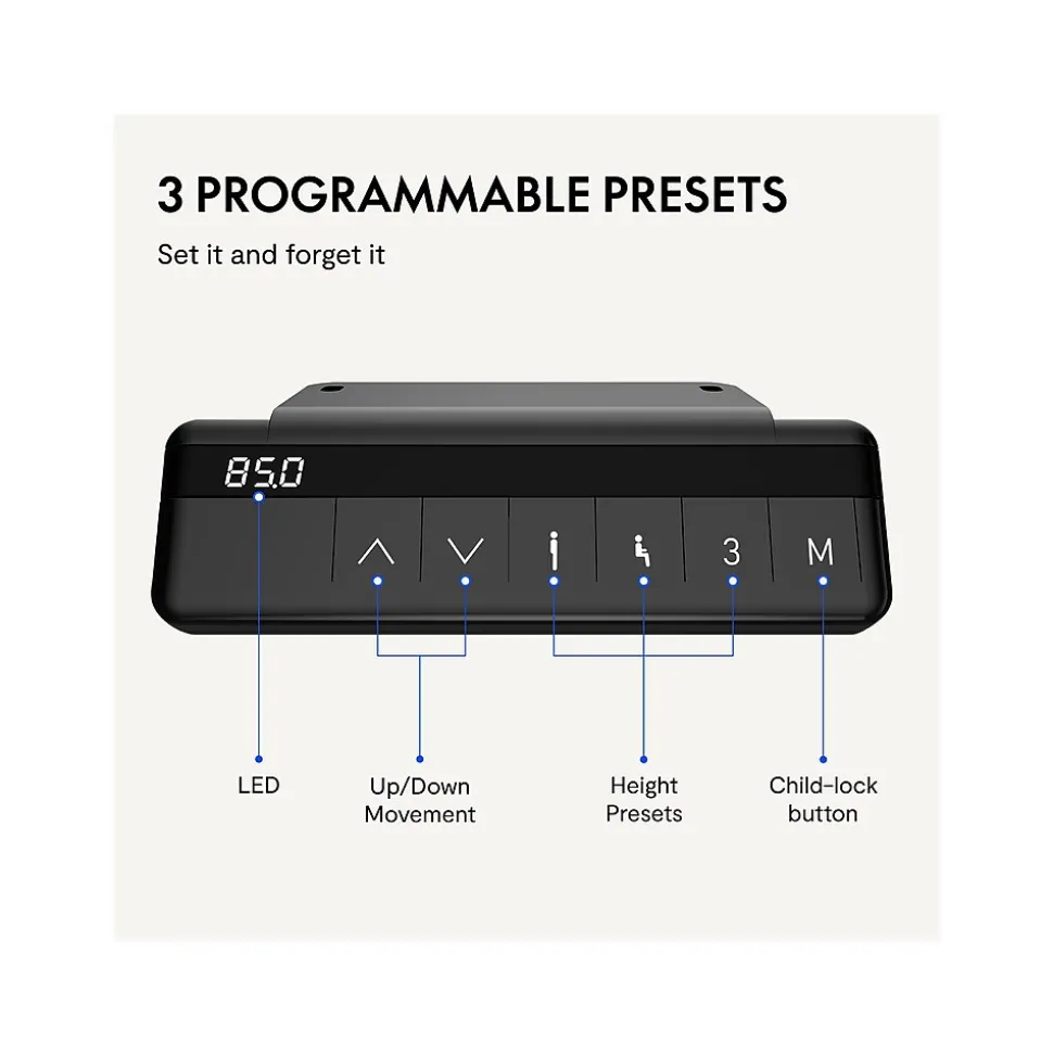 - Anti-collision system stops motor if object is in the way during height adjustment