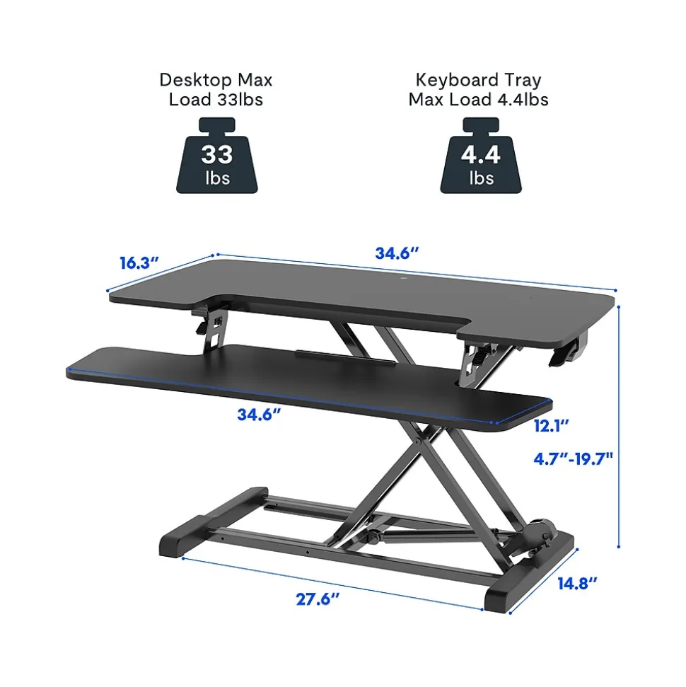 - Standing desk converter provides an easy way to transition between sitting and standing throughout the workday