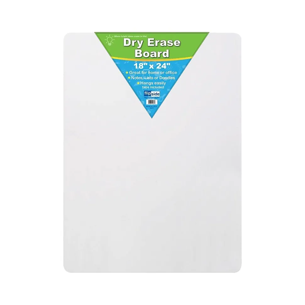 This Flipside economical unframed board with a plain dry-erase surface on two sides is ideal for doodling, academic lessons, agendas, and more. Quality write-and-wipe surface is non-ghosting. Radius corners and smooth edges for comfort and safety.