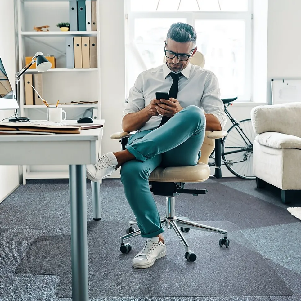 These high clarity chairmats for carpeted flooring are made from Floortex Original polycarbonate, which has double the impact strength of PVC and will not crack, curl, discolor or smell. The perfectly flat and hard surface provides easy glide movement of caster based chairs which can reduce leg fatigue and lower back strain. Ultimat is environmentally safe, free from Phthalates, PVC and toxic chemicals. An ideal choice for people with allergies. Eco-friendly manufacturing with 50% of our manufacturing site’s energy coming from on-site and external renewable sources. 100% recyclable. Our polycarbonate mats lie perfectly flat from delivery and can be used immediately.