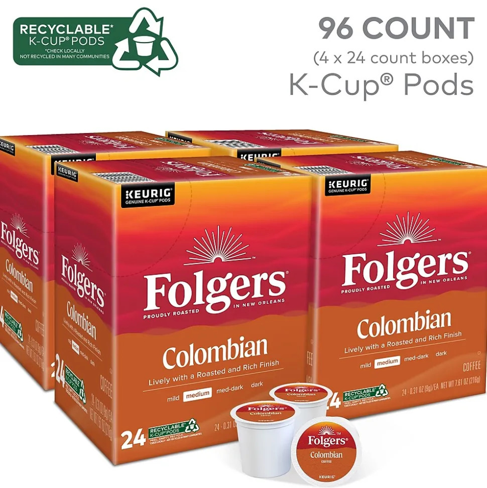 The best part of waking up. Bask in the luxury of this flavorful roast that will delight the soul. Uniquely bold yet exceptionally smooth, Folgers 100% Colombian will tempt your taste buds with the full-bodied flavor and aroma that truly lives up to its name. This coffee is exactly what fans of medium roast coffees have been searching for. With the Folgers K-Cup pod, there’s no measuring or filters. Just place your K-Cup pod in your Keurig coffee maker, and in less than a minute you can enjoy one perfectly brewed cup of the Folgers coffee.