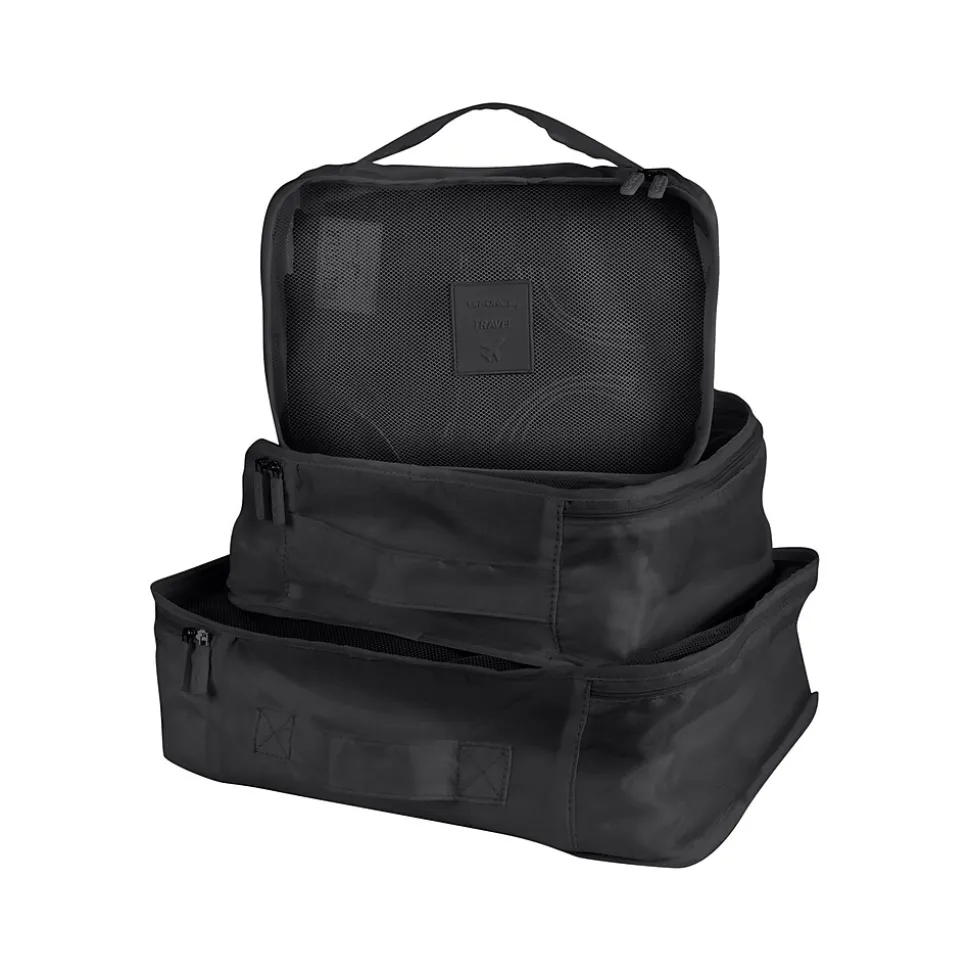 | Travel Accessory Pattern A list of all products included in the Toiletry Bag Kit or other travel accessory kit item. | 3 zippered pouches, 3 packing cubes |