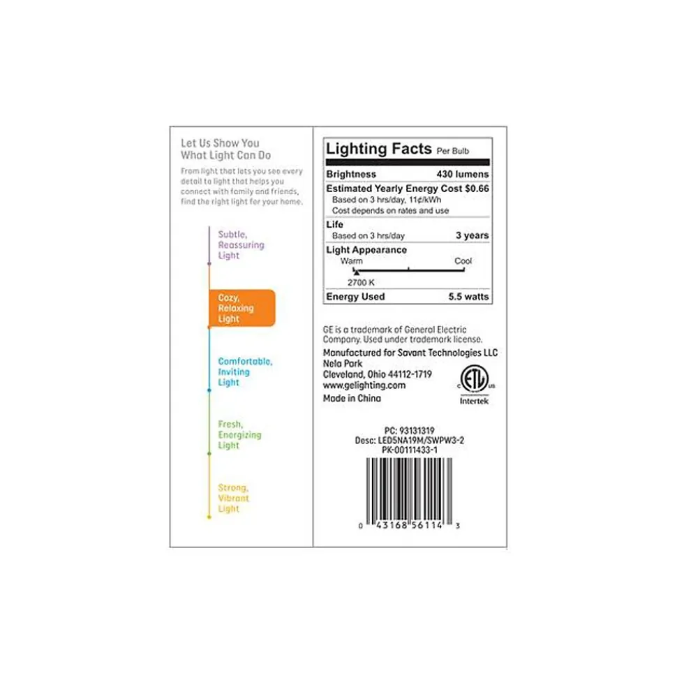 The GE LED light bulb offers outstanding energy efficiency, long-lasting performance, and just-right brightness, all in one package. It illuminates your home with warm, soft white light. Unlike CFL bulbs, this LED bulb features instant full brightness and is free of mercury. It’s great for frequently used fixtures: the LED’s long life and low energy use will help you save money on energy.