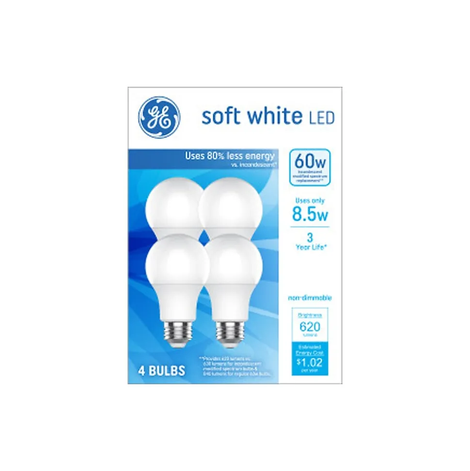The GE LED light bulb offers outstanding energy efficiency, long-lasting performance, and just-right brightness, all in one package. The bulb illuminates your home with warm, soft white light. Unlike CFL bulbs, this LED bulb features instant full brightness and is free of mercury. Great for frequently used fixtures: the LED’s long life and low energy use will help you save money on energy.