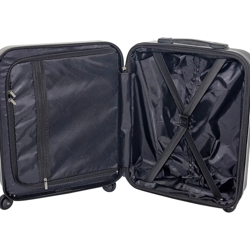 This is a fabulous Geoffrey Beene two-piece luggage set consisting of a 20″ hardside expandable vertical suitcaswe and a 15″ puffy quilted carry-all. The hardside vertical is made of rugged ABS plastic and has a fully lined interior. The case features 360-degree spinner wheels and has a push-button telescopic handle system. The carry-all is made of puffy quilted polyester and features an adjustable/removable shoulder strap and padded handle. This is a must-have travel set.