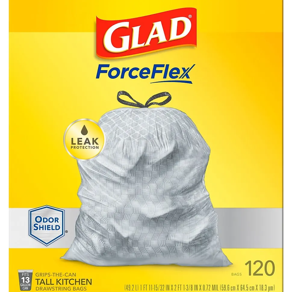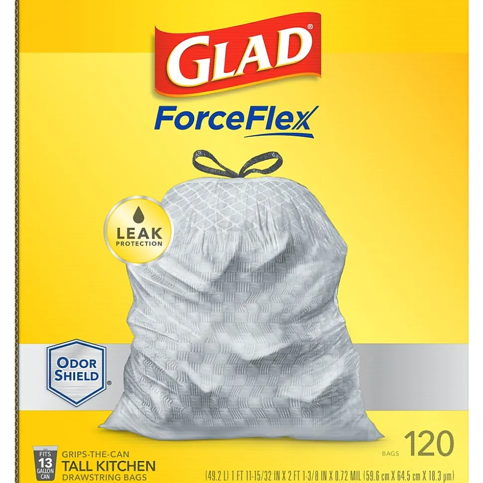 - 13 GALLON PLASTIC TRASH BAGS: Kitchen trash has never smelled better. Glad® ForceFlex Kitchen trash bags with odor protection continuously neutralizes odors