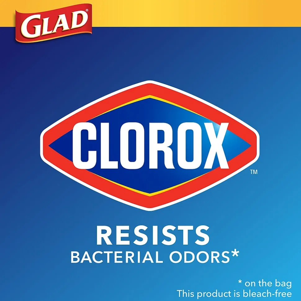 - CLEANING MADE EASY: Glad with Clorox garbage bags work as hard as you do to help maintain a clean and healthy feeling home with a versatile design for bins around the home