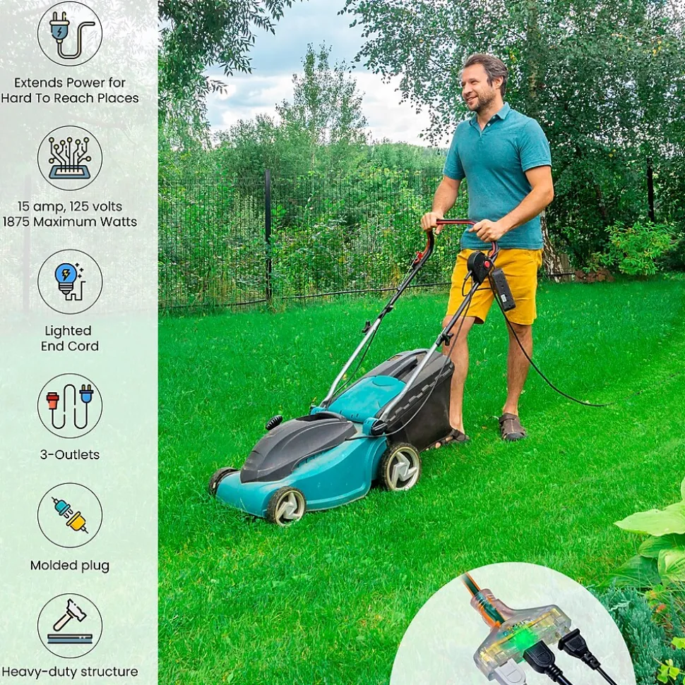 Update and improve the functionality of your home’s patio or garage with this GoGreen Power 3 outlet Heavy Duty Extension Cord, Lighted End. It will resist moisture, abrasion and prolonged exposure to sunlight for enhanced durability. This 3-outlet extension cord is ETL-certified. It offers the ability to turn one outlet into three outlets to help accommodate your power distribution needs. It’s ideal for use around your garage, your home and your work site. The plug illuminates to show when power is on to promote safe and convenient use.