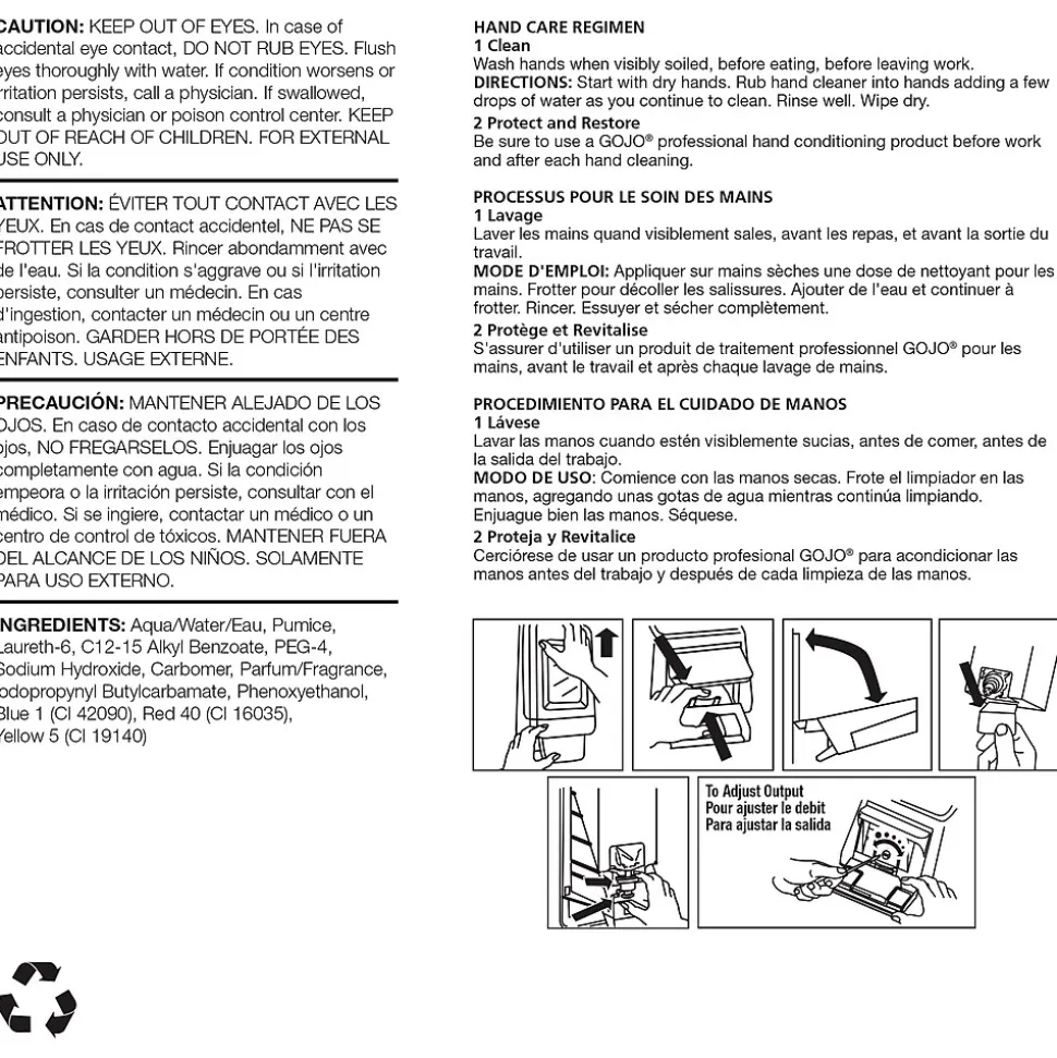 - Case Includes: 4 – 2000 mLGOJO® Cherry Gel Pumice Hand Cleaner refills for GOJO® PRO™ TDX™ Push-Style Dispenser (7200-01), dispenser sold separately