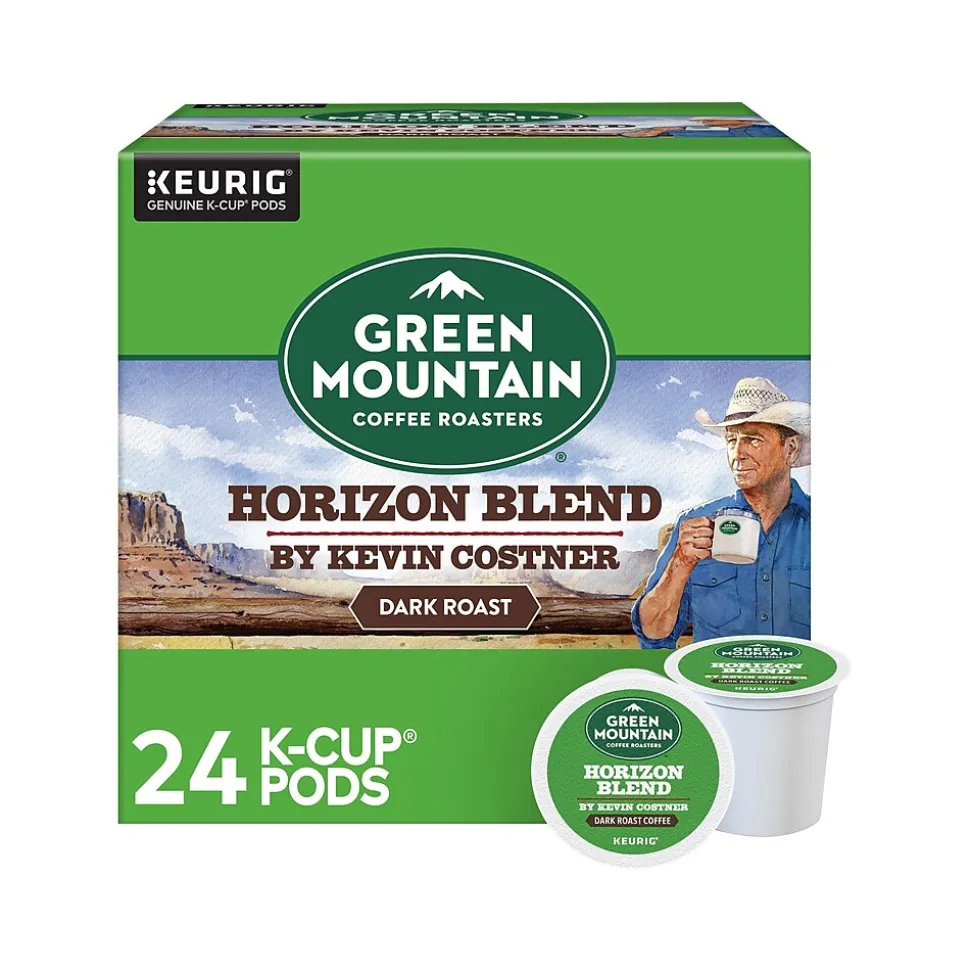 Fix your eyes on the horizon as you take in every sip, courtesy of Kevin Costner. This coffee embodies the bold and boundless spirit of the American west. A dark roast as smooth as it is strong, alive with earthy, smoky flavors that lend true distinction to every cup, just like a certain someone brings true distinction to every role. This unique collaboration with an American icon is a symbol of mutual passion and a celebration of shared commitment to enriching the environment, caring for its people, and giving back to communities. Every Green Mountain Coffee Roasters K-Cup pod reflects the brand’s commitment to source responsibly and is filled with freshly ground coffee beans and brews a deliciously great-tasting cup of coffee, every time. This K-Cup pod is compatible with all Keurig single-serve coffee makers.